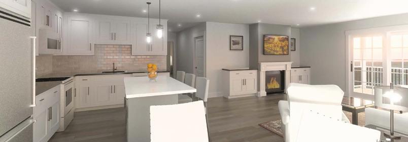 280 STERLING DRIVE, LACONIA - $775,000 This new construction home offers single-level living with 3 bedrooms and 2 full baths on the main floor. The openconcept Great Room features a stone-faced gas fireplace and elegant plank flooring. The adjacent eat-in kitchen is complete with beautiful quartz countertops and a spacious center island. Upstairs, a bonus room provides flexible space for a home office, creative studio, or additional guest accommodations.