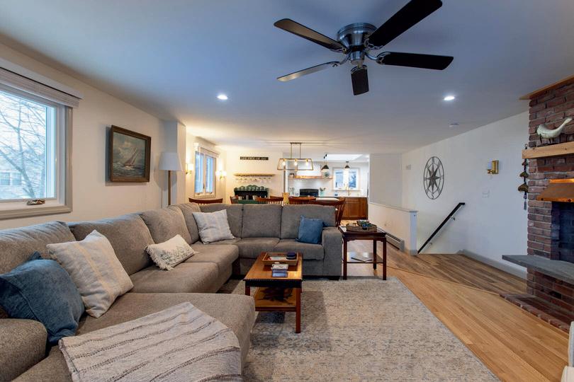 Modernized 1890 Victorian-era home. 3 bedrooms and 2 baths. Open-concept living space perfect for gathering. Sliding glass doors onto a large stone patio. Broad seasonal view of Crescent Lake. Jessica Harriman (603-520-6124)