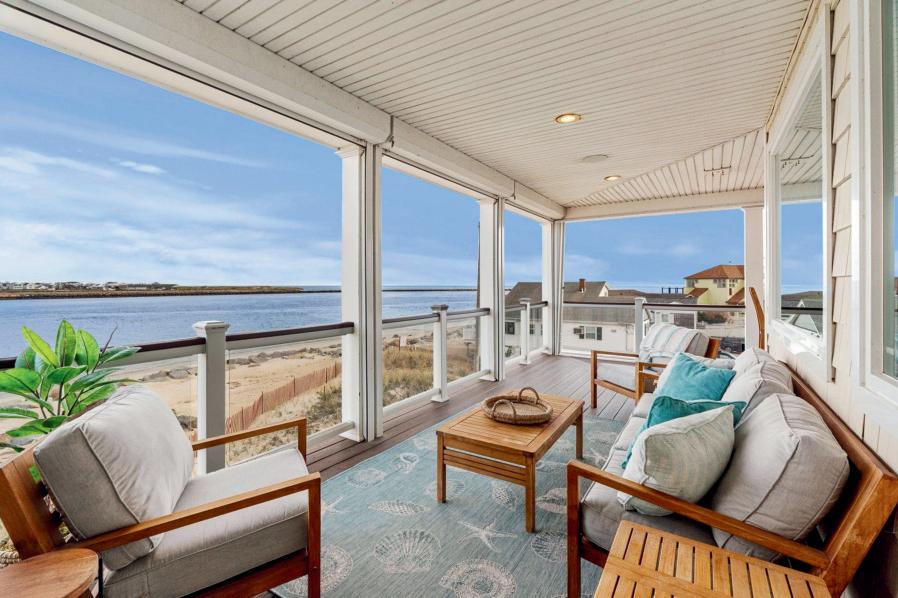 591 Ocean Boulevard Hampton, NH $675,000 - Spectacular views of both the Atlantic Ocean, and sunsets over the marshes. 2-BR, 2 full bath penthouse condo with central air, parking, storage room, elevator and private outdoor spaces. New appliances include Thermador refrigerator, washer and dryer. Short term rentals and pets allowed. Low condo fees - $475/month. Beach access is directly across the street.