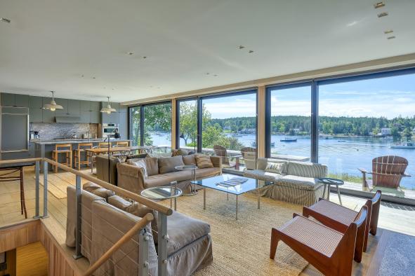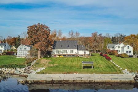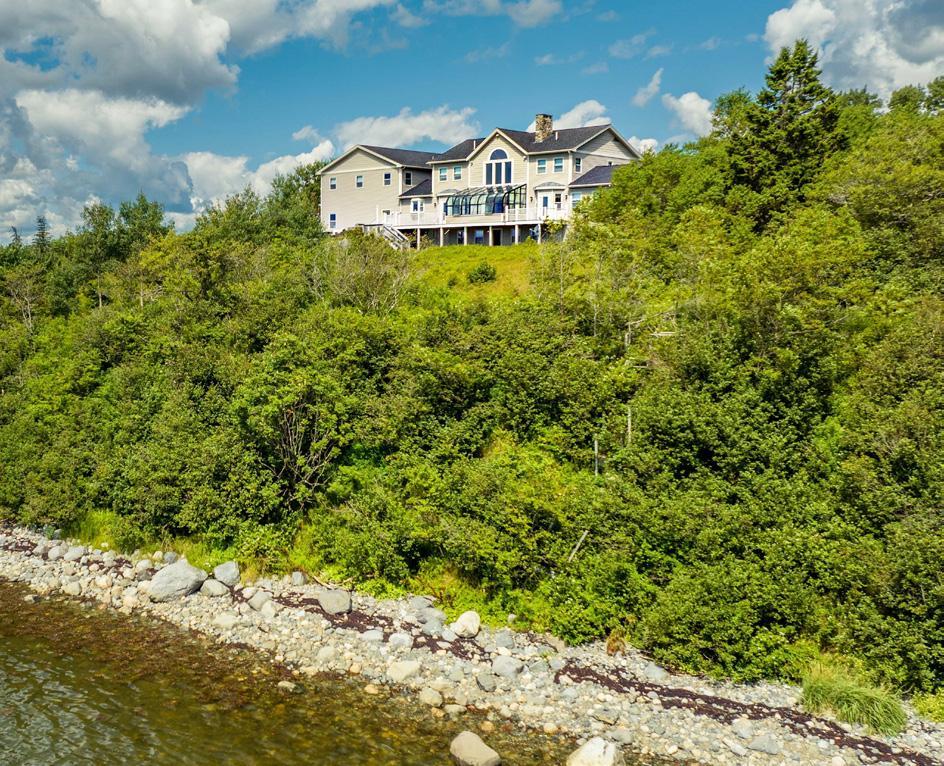 This stunning and expansive oceanfront colonial is a unique find in the heart of coastal Downeast Maine! Custom built and lovingly designed, this home boasts 5 bedrooms, 4 full bathrooms, and 2 half baths. The large great room is the center of the home. Its cathedral ceiling with large custom stone fireplace makes this space warm and inviting on the chilliest of Maine mornings. Off the great room is a sunroom with panoramic views of Holme’s Bay. Enjoy the sunshine and a cup of coffee as seals and the occasional whale pass by in the bay. A beautiful staircase leading to the second floor greets you as you come through the front door. A study off the entry offers additional space and could be used for many purposes. This part of the home also offers a large eat-in kitchen with expansive pantry, double ovens, and a large laundry room. A formal dining room offers extra space for entertaining. The large owners suite, with ensuite bath, has a custom marble shower, matching double vanity, and soaking tub. The room offers a large walk-in closet with builtin shelving system, beautiful views of the bay, and private deck. In addition to the large main living area, the basement has a finished in-law apartment. The space includes a kitchen, bath, laundry, living area, and walkout entrance to the patio with an outdoor kitchen. Above the oversized, sheet rocked and insulated, attached garage with 2 bays and 4 spaces to park your cars or toys, is a large office space where the owner ran his successful engineering business for the past 26 years. This space has been wired and designed so that it could be converted into two additional apartments or be used however the new owners desire. The frame of the home is structural steel. There is an additional 2 car garage off the paved driveway for extra storage. With too many wonderful features to mention, this home is a must see!