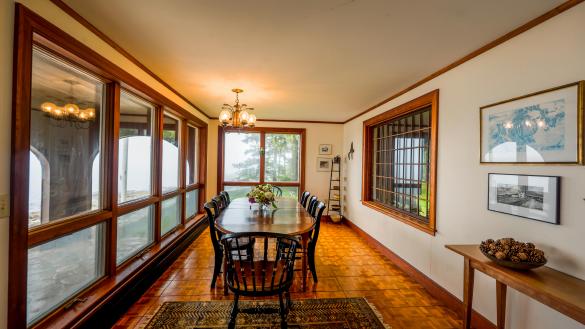 views of St. Croix River and Canada. Plenty of heat with 3 heat pumps, wood furnace, forced hot air, gas stained glass windows, original Rumford fireplace and 5 wooded, private acres. MLS#1570658 $479,000 Samra