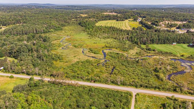 MACHIAS: Seven acres on Route 1 in Machias abutting the airport. This attractive property is bordered by about 950 feet along the adjacent brook. The land is varied; it has level and open space with rolling areas and some if it is wooded. This is a convenient location for a home or business. $45,000