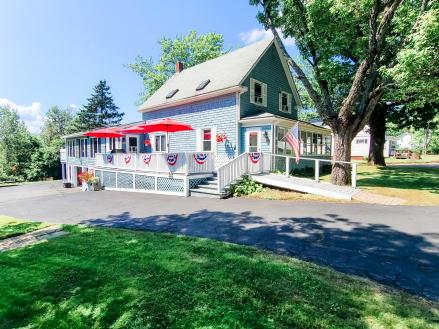 MACHIAS: Charming, centrally located, spacious antique cape (4 bdrms, 2.5 baths) has been lovingly restored w/convenience in mind. A welcoming front entry features twin parlors w/French doors & a hall, which showcases newly finished hard wood flooring. Huge courtyard-style deck guarantees hours of peace & joyous gatherings. Two fully functioning kitchens provide ample capacity for gatherings, or perhaps a catering business. Huge first level primary bdrm w/full bath & laundry also boasts an adjacent office/sitting room w/second street-side entrance. Upper level bdrms are spacious with a suite (bdrm & dressing room), a large landing & full bath. Major systems improvements include new furnace, updated wiring, installation of optima fiber insulation and much more. $289,000