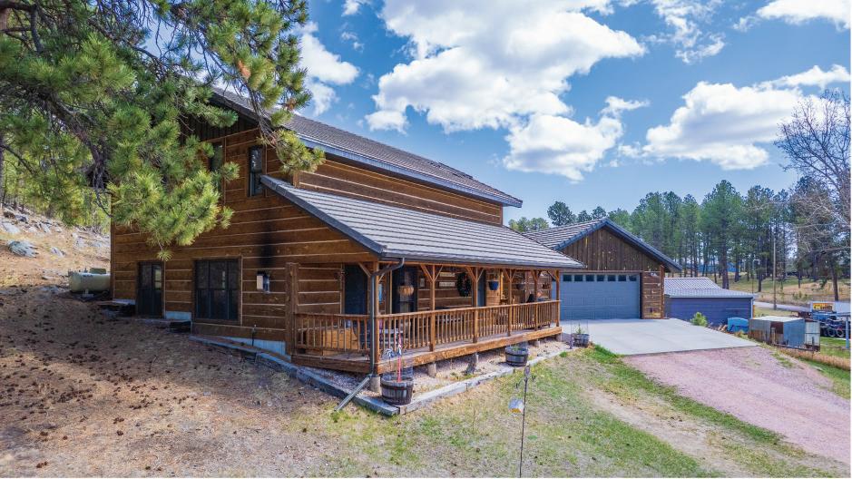 7.75 ACRES — BORDERS USFS LAND 3-BR, 2-bath home with comfortable living spaces and scenic views that Borders U. S. Forest Service land. Classic old barn, 3 stall stable barn, wood post & barbless fence make this the perfect new home for your horses. 1918 Vintage log cabin adds rustic charm and endless possibilities. MLS# 85664 $525,000 Call/text Jeffrey Storm 605-673-2629