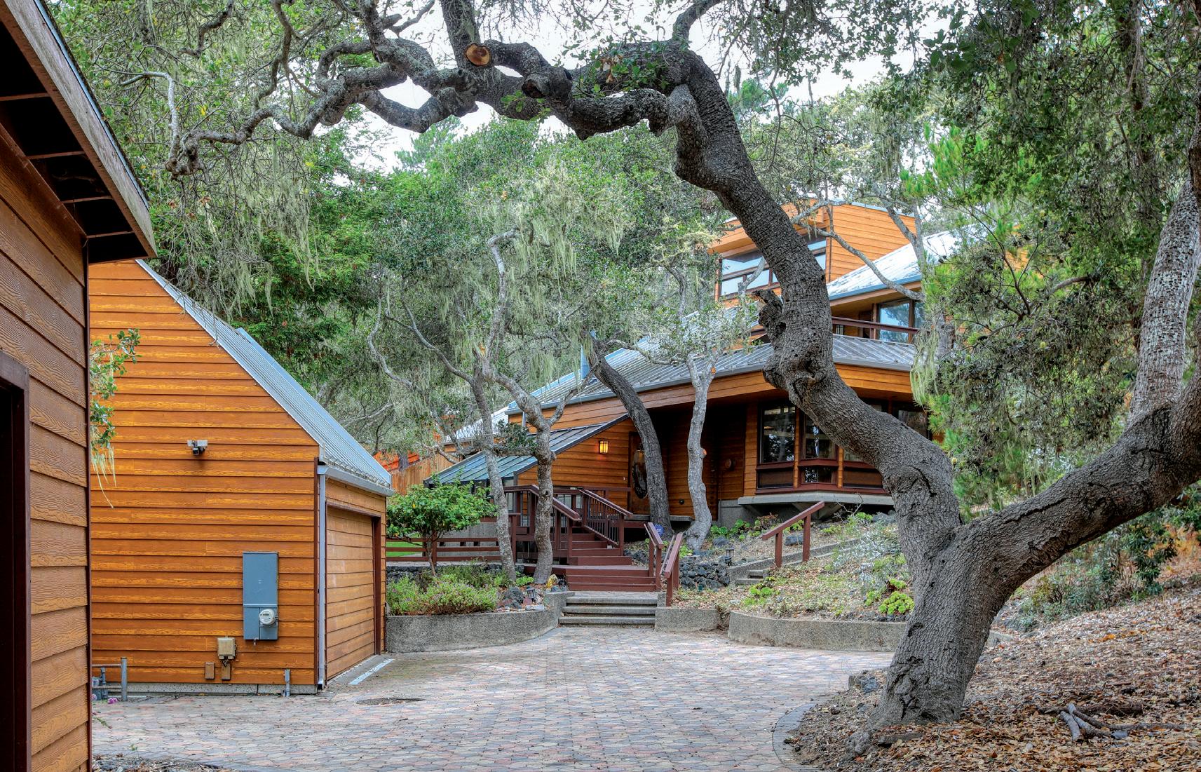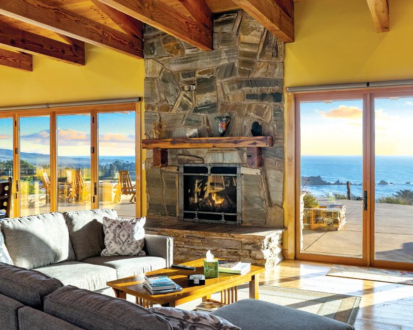 This passive solar home has exposed aggregate walls and a Douglas Fir post-and-beam structure. It features vaulted, beamed ceilings with skylights and windows, creating a bright indoor space that blends with the outdoors. The decks offer ample outdoor living and provide ocean views, sunset views, and direct access to the 1,600-acre Covell Ranch. The guest house includes two bedrooms and a bath, with exposed beam work. The property spans over one acre across two parcels, offering privacy and potential for a legacy estate. $1,688,000