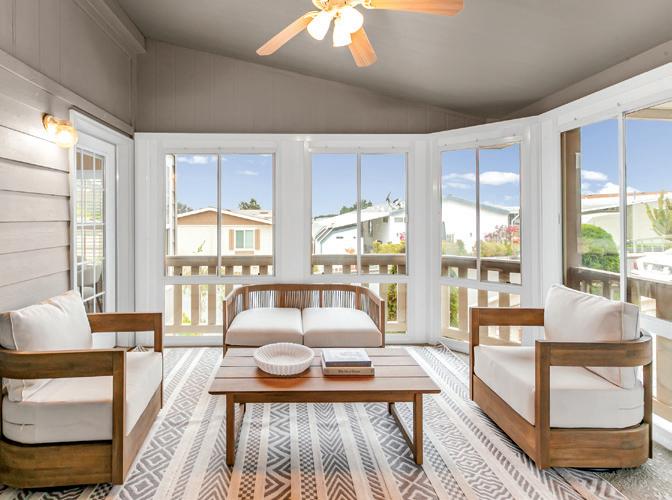 Spacious and inviting 1,440 SF, 2 BR, 2 BA double-wide manufactured home with ocean views. Beautifully remodeled with modern updates. Large living room flows seamlessly into an open kitchen with breakfast bar and stainless-steel appliances, plus an additional living area with access to the deck to enjoy the views. $744,000