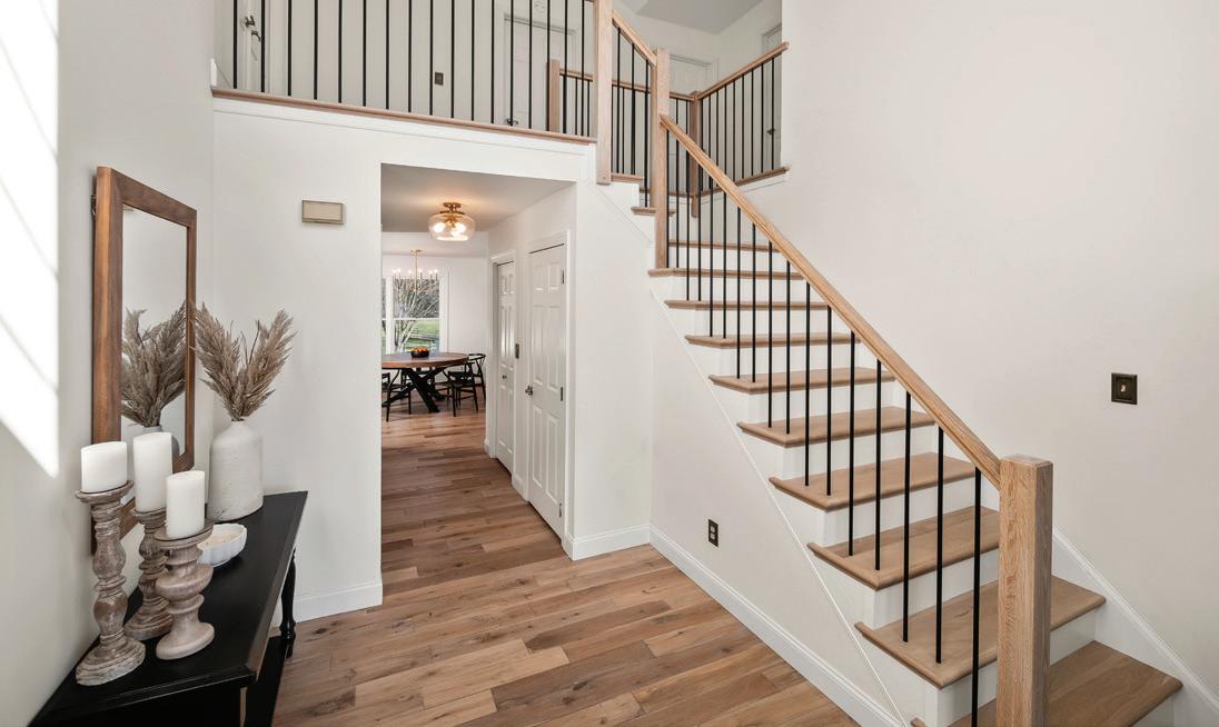This farmhouse-inspired 4-bedroom, 2.5-bath home blends refined country charm with modern updates. A classic wraparound porch welcomes you, while inside, hardwood floors and an open staircase set an elegant tone. Bright living and dining spaces flow into an open-concept kitchen and family room with gas