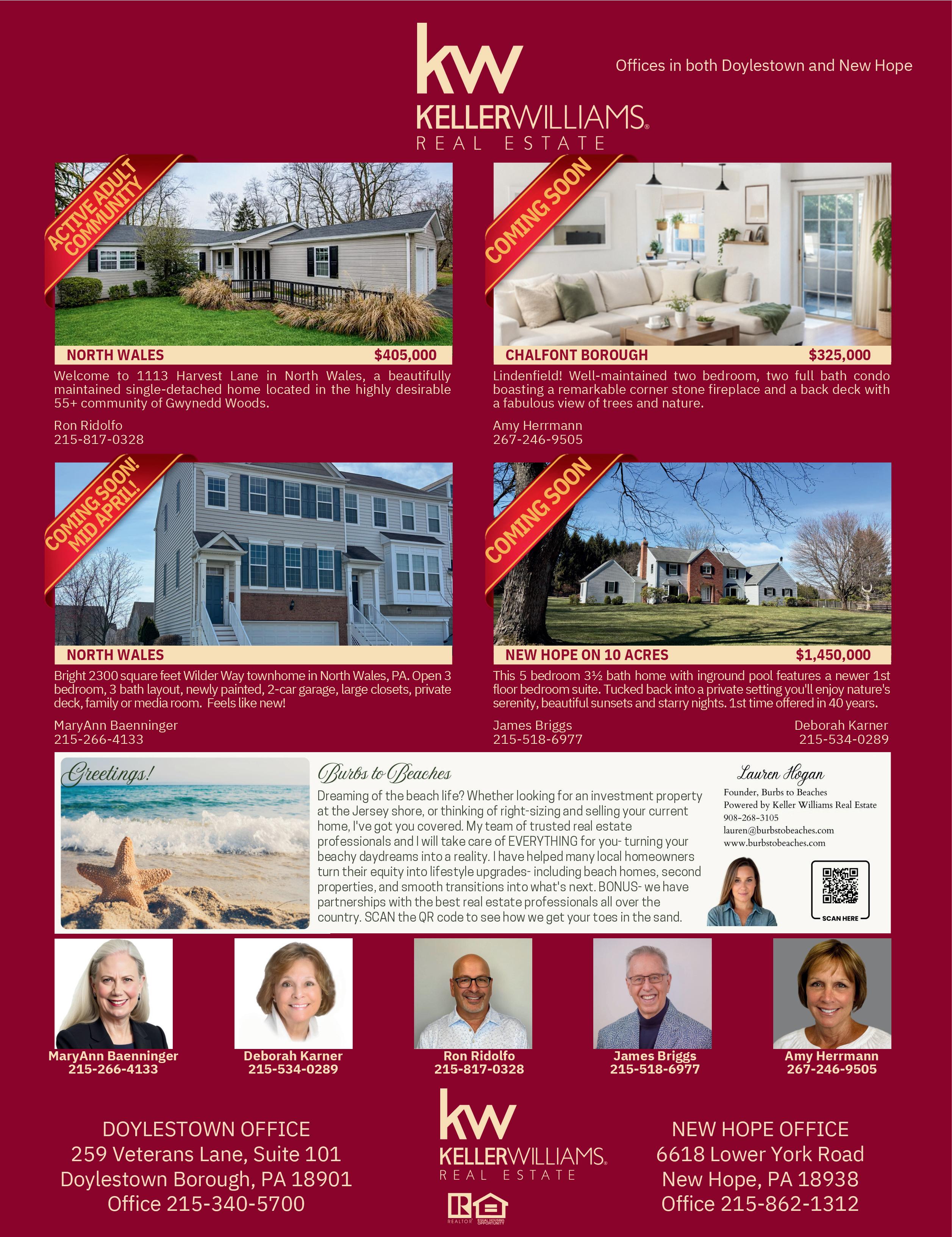 Charming 3BR, 2.1BA townhome featuring new laminate flooring throughout the first floor and carpeting on the second. Spacious family room includes electric fireplace, mounted TV & speaker. Convenient location near Doc Adams Community Park, Wegmans, and Valley Square Shopping Center. Located in the highly regarded Central Bucks School District. No association fee! $380,000 | Call Mary Lou Erk for details.