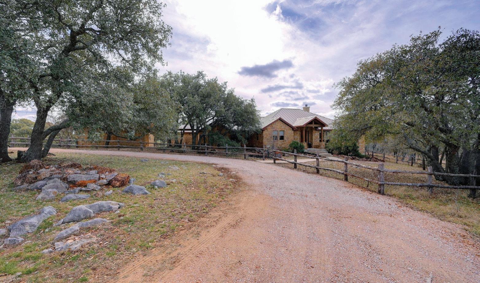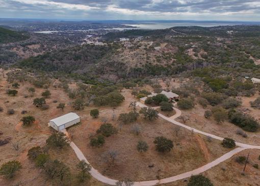 Introducing a rare Hill Country retreat within Wolf Creek Ranch--a private, gated ranch community located approximately one hour west of Austin, with sweeping views of Adams Bluff and Lake Buchanan. This remarkable property offers the privacy of just over 23 acres, combined with access to over 1,300 acres of preserved ranch land. The main residence spans 3,343 sf and showcases soaring ceilings, exposed wood beams, stained concrete floors, and a striking stone fireplace that anchors the primary living space. Large windows and French doors fill the home with natural light and open to a covered outdoor living space, creating a seamless connection to the surrounding landscape. The open and functional floor plan is designed for both everyday living and entertaining. Oversized kitchen with a built-in breakfast nook, a formal dining room, a dedicated office, a private guest wing, and a spacious primary suite positioned to capture southwestern views across the property. Outdoor features include gently rolling acreage, mature oaks, free-roaming livestock, and a large garage with workshop space, double roll-up doors for easy RV or boat parking, and a heated and cooled flex area.