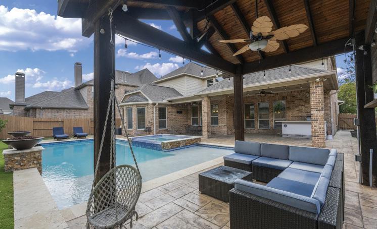 Over an acre in the prestigious Long Canyon neighborhood, this beautiful home blends privacy, natural beauty, and flexible living. Inside, a grand two-story foyer features Brazilian wood flooring and an elegant staircase. To the left, a formal living room doubles as a home office or flex space, while to the right, a generous dining room is perfect for dinner parties or holidays. The open-concept kitchen includes a large center island, granite counters, abundant cabinetry, and a sunny breakfast area overlooking the backyard oasis. Off the kitchen, a bonus room currently serves as an office but could function as a butler’s pantry, planning nook, or hobby room. Two bedrooms share a Jack-and-Jill bath, while the upstairs guest suite has a private en suite and separate access from the oversized game room-ideal for teens, guests, or multi-gen living. Large utility room with a work sink and an oversized three-car garage with ample storage. Covered patio overlooking the sparkling pool and hot tub, surrounded by new landscaping, colorful garden beds, and stone pathways.