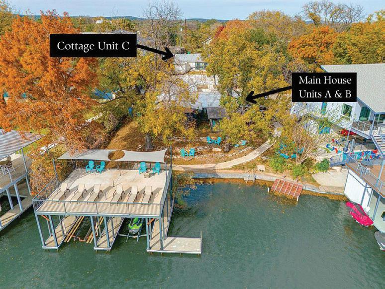 Positioned on 70 feet of prime, pass-thru level Lake LBJ waterfront, this furnished 3-bedroom, 2-bath lake house offers immediate lifestyle and income potential.