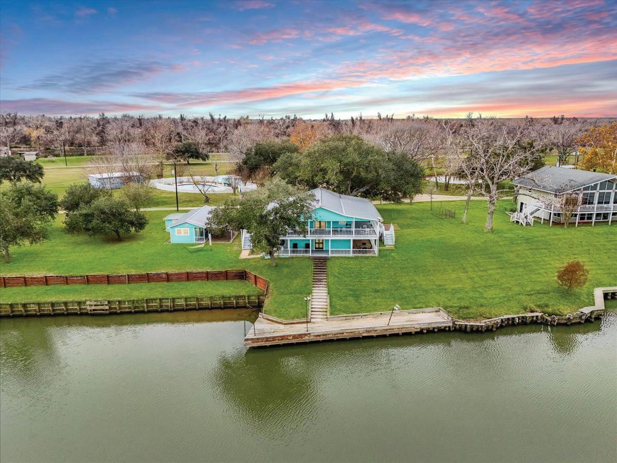 Set along the Colorado River, this is a rare chance to own part of a private, owner-exclusive island community spanning nearly 40 acres, a secluded escape with unmatched coastal access just minutes from Matagorda’s bays and some of the best fishing on the Gulf Coast. This inviting retreat offers 6 bedrooms, 3 bathrooms, and a flexible garage with guest house setup perfect for hosting or creating a standout getaway. With three additional platted lots, the wrap-around porch offers sweeping river and nature views, while the home’s lift provides effortless access, allowing for a variety of flexible and creative uses. This a truly extraordinary and one-of-akind property with endless opportunities of an exclusive get away!