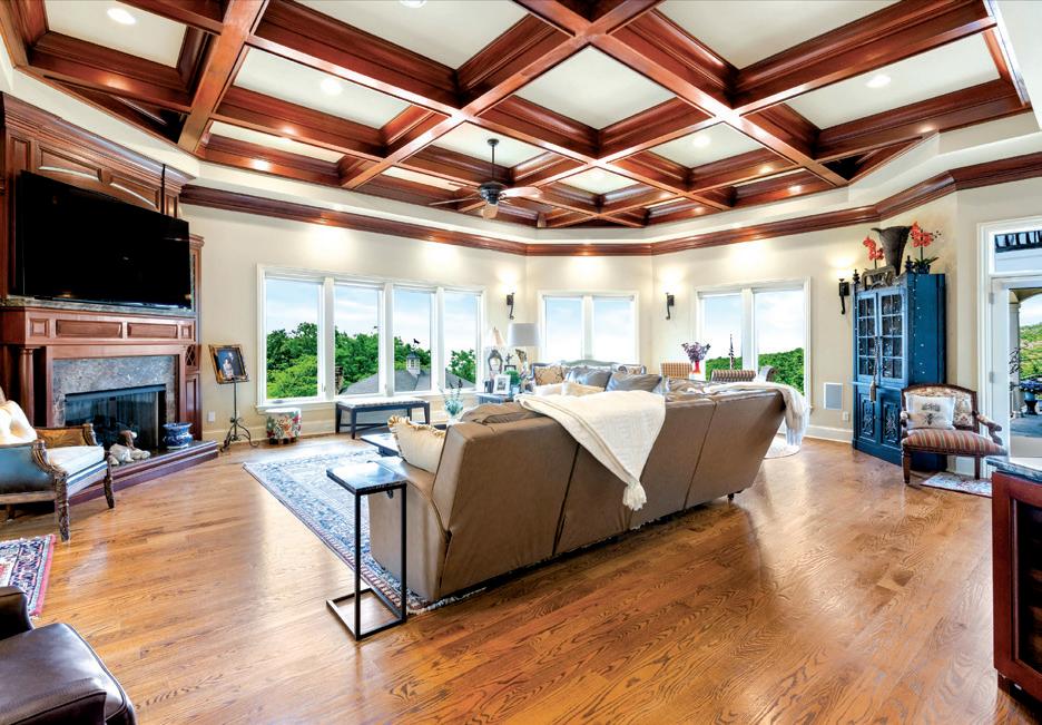 Rarely available is a Northern Alabama 6-bedroom, 8-bath private estate on Monte Sano Mountain boasting over 10,000 sq. ft. The property spans 6+ acres and is surrounded by the Northern Alabama Land Trust, ensuring privacy and limiting future development. A private, meandering driveway with waterfalls and fountains leads to a stunning French Chateau-style home, a masterpiece of design and functionality. Every detail has been carefully curated, from hand-carved front doors imported from Mexico to gleaming hardwoods, coffered ceilings, and an English stone fireplace. Natural light fills the home, highlighting panoramic mountain and city views. Luxury features include Honduran Mahogany trim, gourmet kitchen, hearth room, and 30x35 Gathering Room with French doors to a covered porch and Hot Tub Spa. The main-level primary suite opens to a private patio with city views, a spa bath, and a custom walk-in closet.