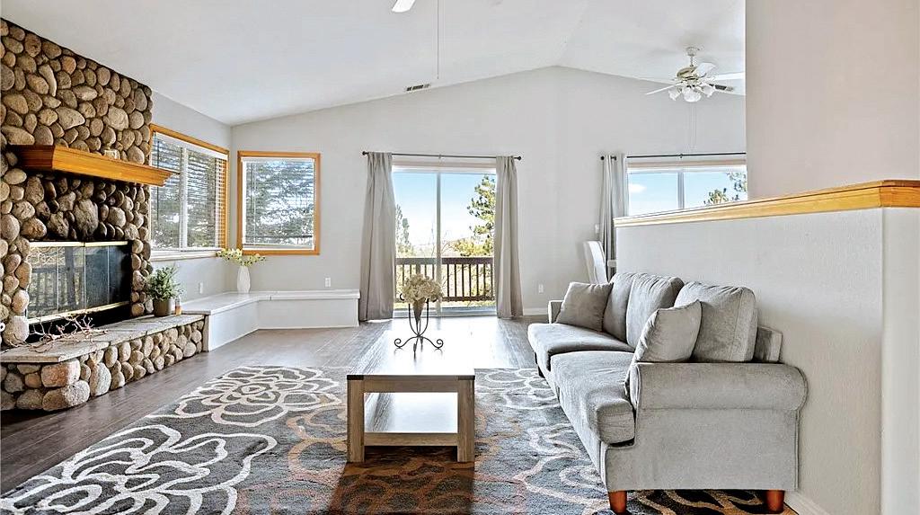 4 BR, 2 BA home with breathtaking views. Ideally perched on a hilltop. Inviting open-concept layout.