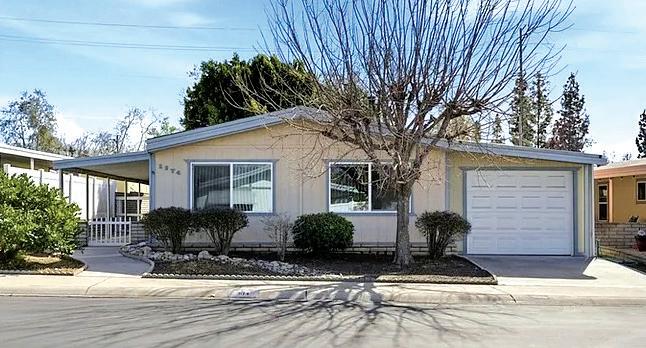 MOVE IN READY! BEAUTIFUL UPDATED HOME! New windows, new paint, newer flooring, updated kitchen, updated baths, light and bright inside, large lot, 2 sheds! So many possibilities! Space rent is $1049/mo. Community pool, spa, gym, activities... 2 bed/2 bath, approx 1248 sf. Asking $225,000