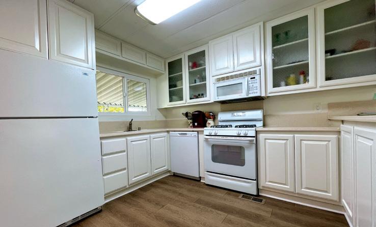 home on larger lot with a peek a boo view! Brand new windows, all new floors, paint, matching counters, light fixtures, new primary shower, new fence. Space rent is $1049/mo. Community pool, spa, gym, activities... 2bed/2ba, approx. 1248 sf. Asking $249,000