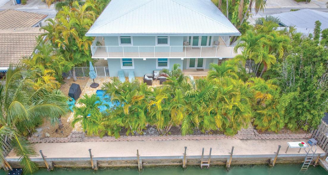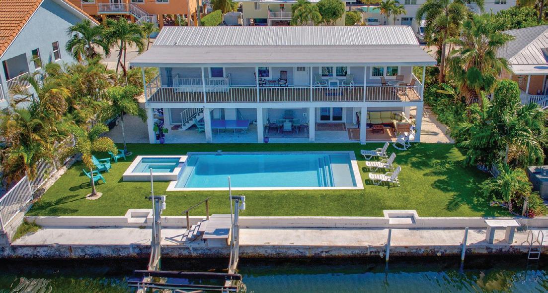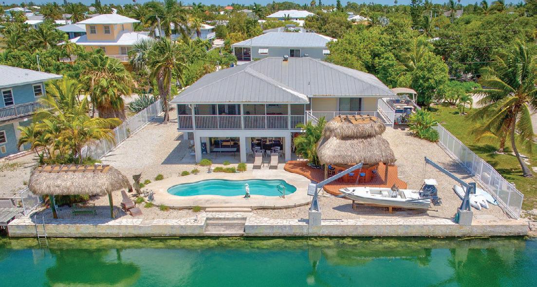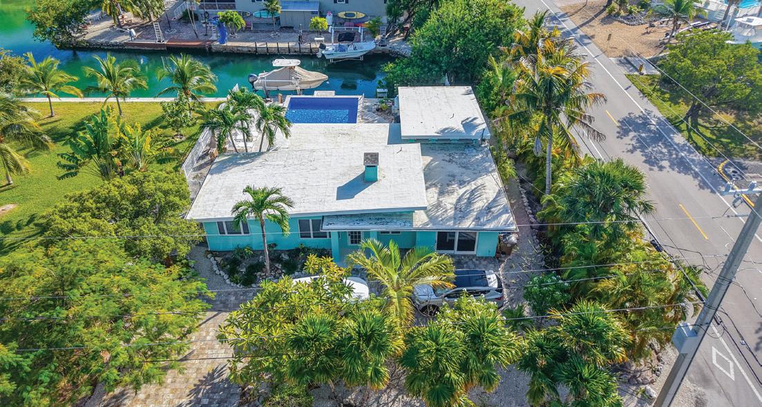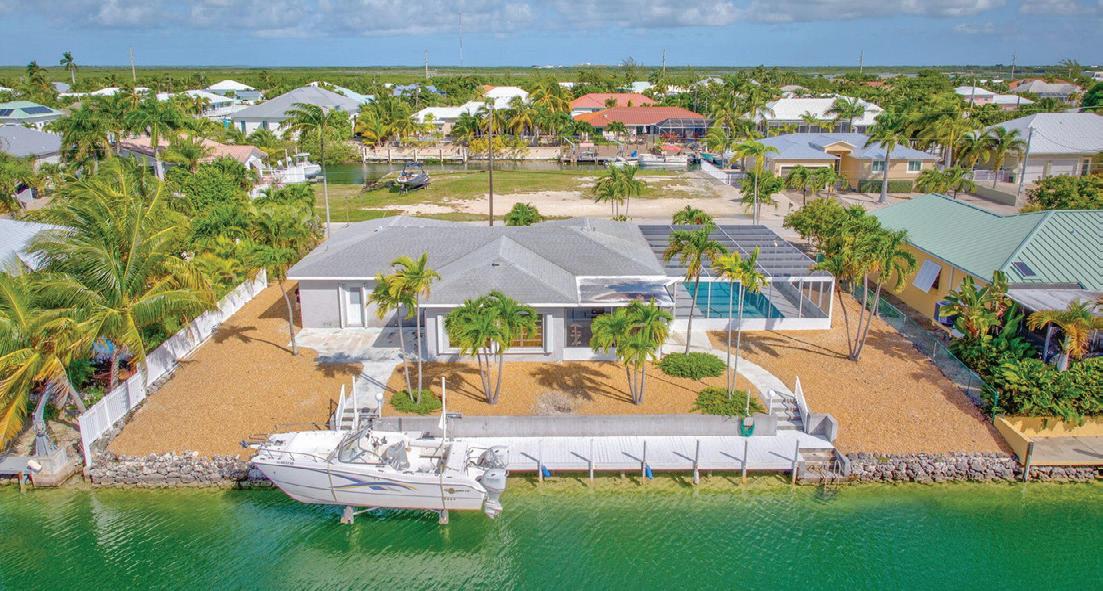 This Mid-century Modern three-bedroom, two-bathroom canal-front home in Cudjoe Gardens was built by the developer for himself and has since gone through many updates and modernization, including a new Chef’s Kitchen, impact doors and windows, and a stunning waterfront pool. The upscale neighborhood offers a full-service marina, deep draft flow-through canals and a waterfront restaurant.