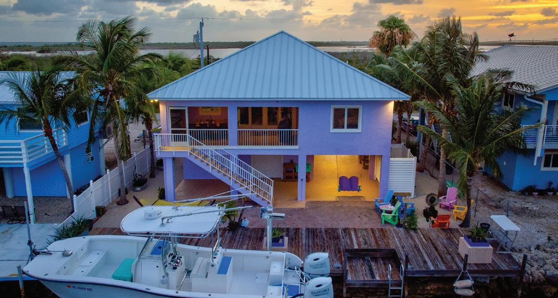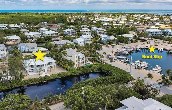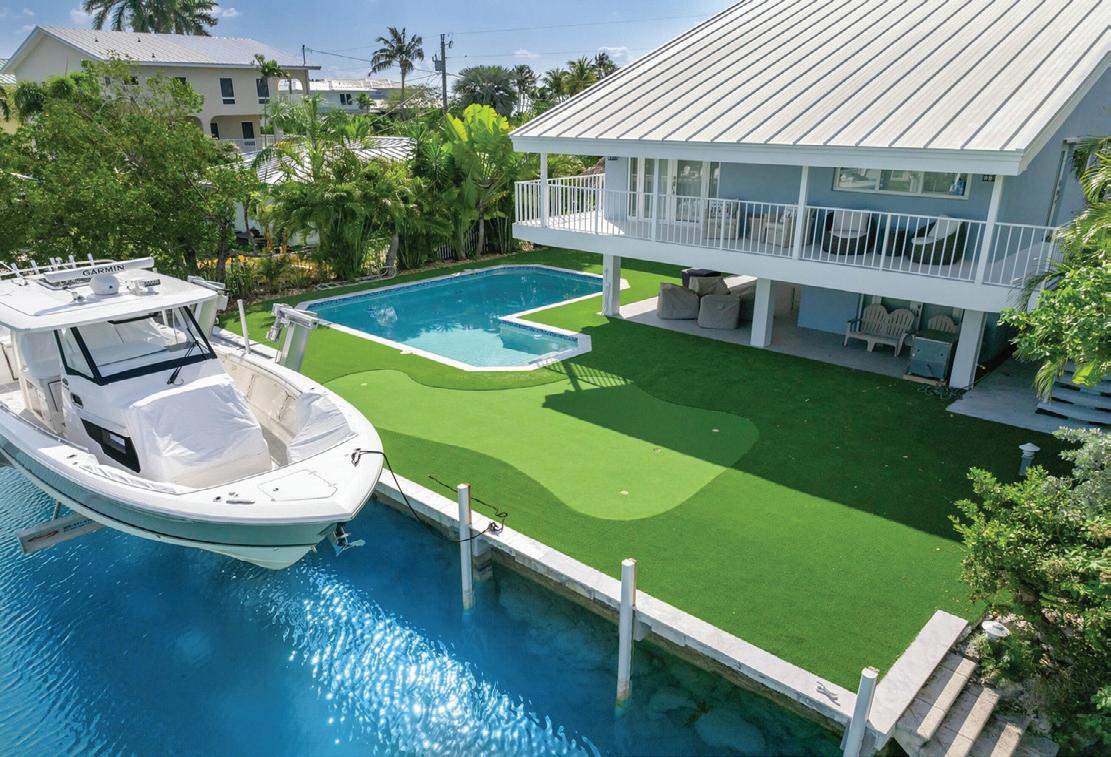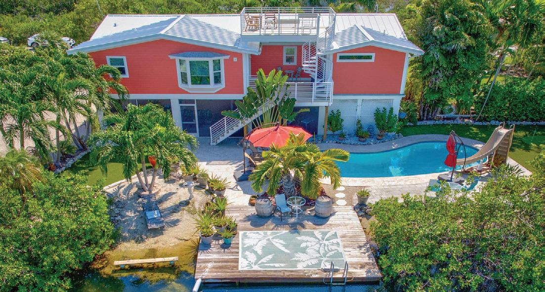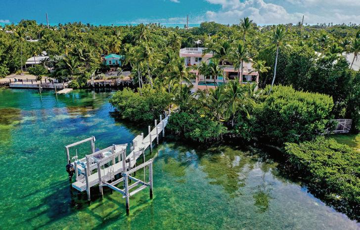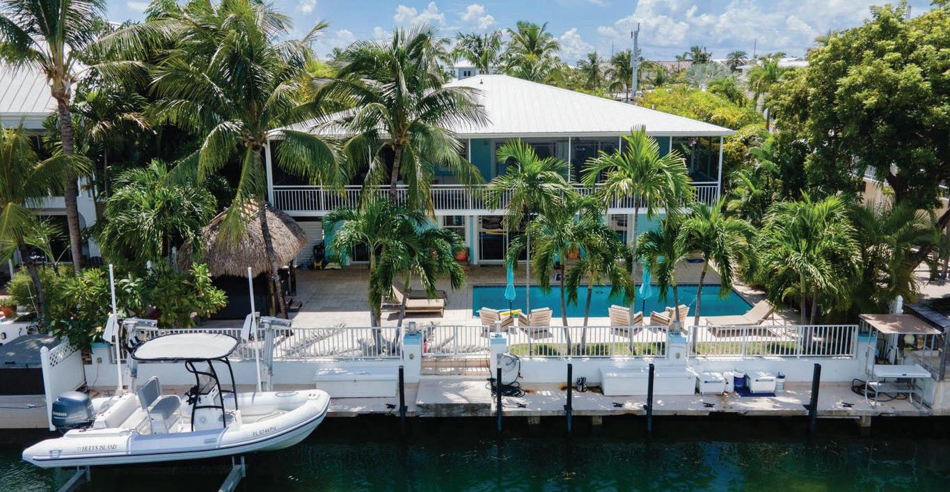 This Mid-century Modern three-bedroom, two-bathroom canal-front home in Cudjoe Gardens was built by the developer for himself and has since gone through many updates and modernization, including a new Chef’s Kitchen, impact doors and windows, and a stunning waterfront pool. The upscale neighborhood offers a full-service marina, deep draft flow-through canals and a waterfront restaurant.