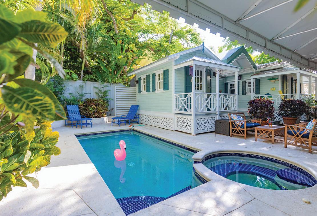 Built in 2008, this stunning pool home perfectly blends the timeless character of classic Key West architecture with the comfort and convenience of modern construction. Ideally located just a short stroll from shops, restaurants, bars, and the world-famous Duval Street, this home offers the best of island living. Step inside to a bright, openconcept main living space with a wall of stackable impact glass doors that seamlessly connect the indoors with the private outdoor oasis. Just beyond the doors, you’ll find a custom heated pool with tranquil water fountains, surrounded by lush tropical landscaping that offers both beauty and privacy.
