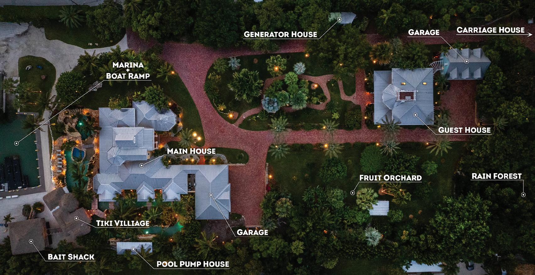 Discover the crown jewel of the Florida Keys. This extraordinary seven-acre oceanfront estate defines luxury, offering private ocean frontage and unmatched tropical serenity. From the moment you pass through the gated entrance, find yourself immersed in a world of elegance, privacy, and unparalleled amenities. With potential for additional private hangar purchase, this property offers unmatched exclusivity and ease. A timeless Chicago brick-paved driveway winds gracefully along the lush rain forest and fruit orchard, leading through the grand Palm Alley to the heart of the estate, setting the tone for the tropical oasis that awaits. The custom-designed 5,600+/- sq. ft. main residence by D’Asign Source showcases architectural brilliance and exquisite craftsmanship. A separate 2,999 sq. ft. guest house includes its own kitchen, multiple bathrooms, workshop, and spacious living areas, making it ideal for hosting guests or staff. The resort-style pool features waterfalls, waterslide, a Tahitian-style river, an expansive spa, a swim-up tiki bar, and a tiki village. Private bedroom balconies provide direct access to this stunning pool, making it perfect for tranquil escapes and lavish entertaining.