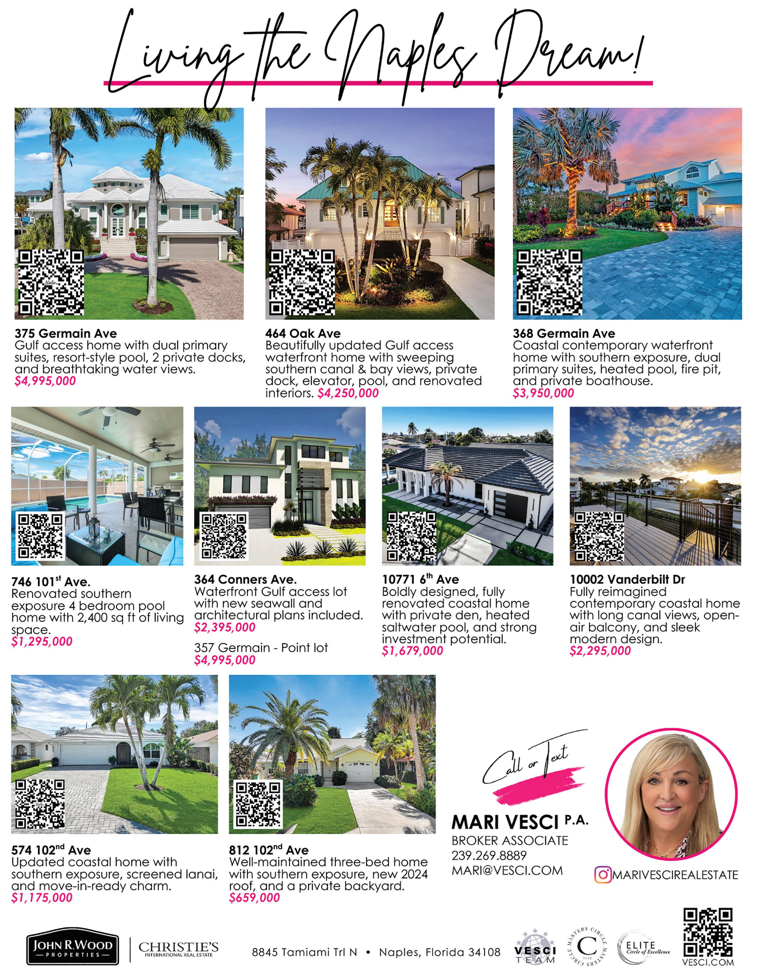 Vanderbilt Beach Vanderbilt is a premier beach and boating community in Naples featuring beach-front or bay-front homes and condominiums. The neighborhood features an interesting blend of original Florida homes as well as newer upscale homes. A plethora of shopping and fine dining from the Ritz to Mercado. in addition to the stellar boating, residents enjoy the pristine white sands of Vanderbilt Beach. Call Mari to learn more!