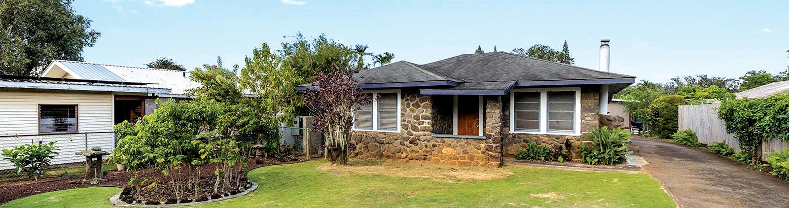 This charming 3-bed, 1-bath historic ‘Tsuji’ stone home in Haiku sits on a 1/3-acre lot with a new septic system, solar, and underground electrical upgrades. Built in 1948, it features AC, a lava-stone fireplace, and an attached carport. A detached 2023 studio rental offers a full kitchen, AC, and laundry. The yard includes a tropical orchard, lawn, and treehouse. Just minutes from beaches, waterfalls, and shops. This home is ready for you to make it your own!