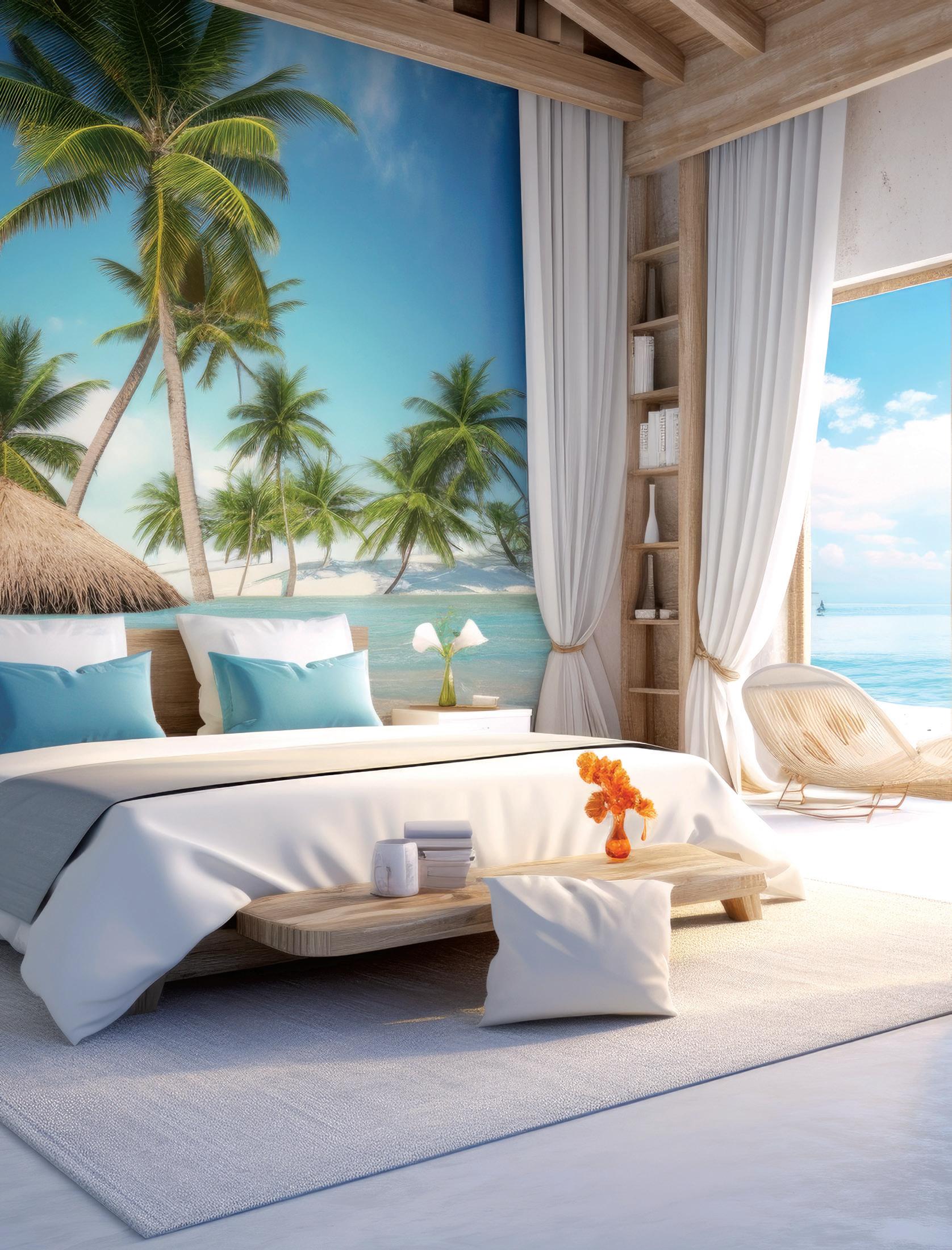 Choose a Soothing Color Palette. Luxury resorts lean into nature-inspired tones that calm the senses—creamy whites, soft sand, misty grays, or ocean blues. Avoid harsh contrasts and instead layer complementary hues. Add dimension with tactile materials like linen, boucle, and velvet, or incorporate subtle metallic accents through fixtures and décor for a hint of glamour.