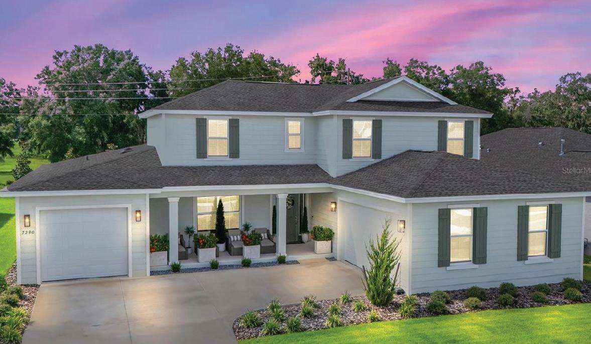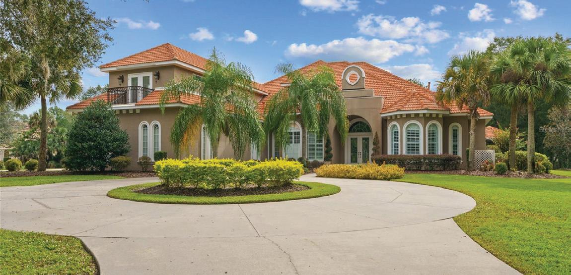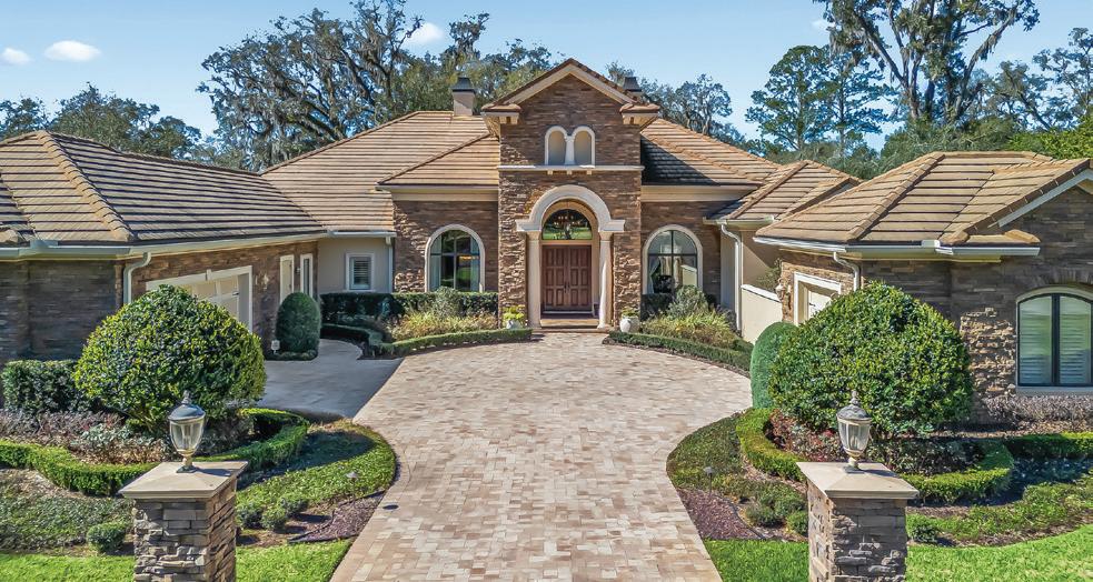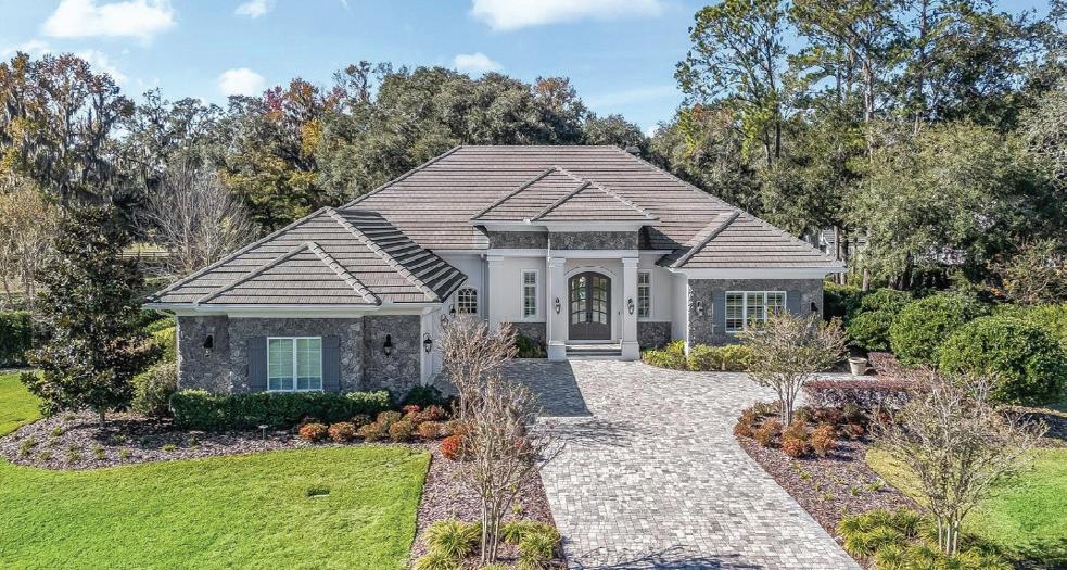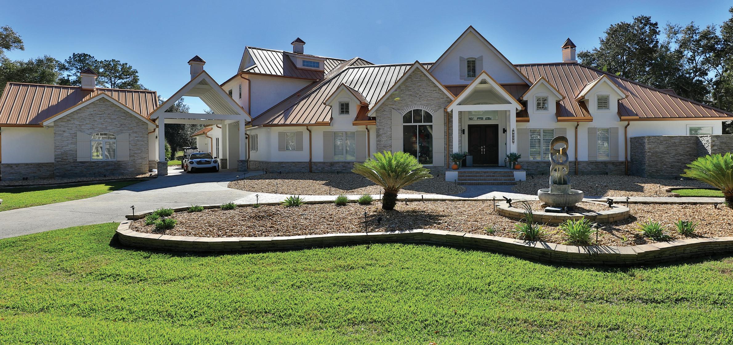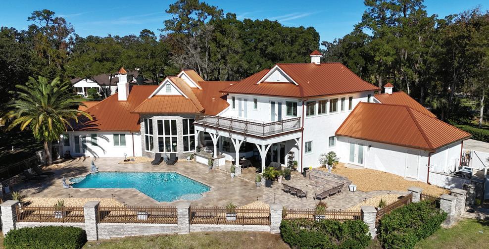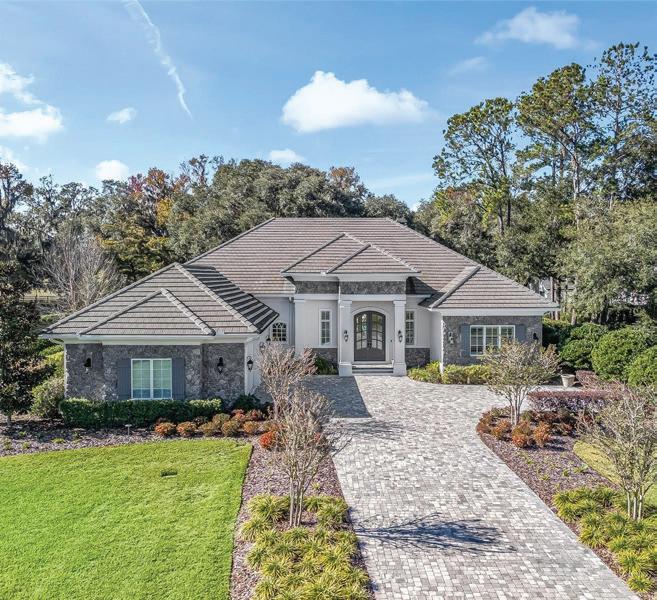 in the Country Club of Ocala... where timeless architecture, modern elegance, and resort-style living come together in perfect harmony. Nestled along the rolling fairways of a unique, manicured golf-course community, this striking residence commands attention with its copper-toned metal rooflines, stone accents, and grand presence- an estate as beautiful as it is unforgettable. Inside, the home unfolds with soaring ceilings, abundant natural light, and sweeping golf views framed by dramatic floor-toceiling windows. The formal living room creates a showstopping first impression with its coffered ceilings, stately fireplace, and wide-open vistas that blur the line between indoors and out. The gourmet kitchen is designed for both beauty and function, featuring rich custom cabinetry, a massive entertaining island, double ovens, and warm gathering spaces that flow effortlessly into the family and dining areas. Every detail speaks to quality craftsmanship and comfort. This exceptional home offers 4 bedrooms and 5.5 baths, plus an office and a media room, ensuring ample space for both relaxation and productivity. A breezeway conveniently connects to the man cave, which includes a full bath and can easily be transformed into a mother-in-law suite, adding versatility to the layout. Step outdoors to your private retreat— expansive resort-style pool area surrounded by stone pavers, elegant fencing, and multiple lounging spaces. From sun-drenched patios to an inviting fire pit terrace, the setting offers unmatched views of the manicured greens and mature oaks that define the landscape. Outdoor living is elevated even further with a covered patio, upper-level terrace, and a full outdoor kitchen, ideal for hosting unforgettable gatherings. Set within one of the area’s most desirable golf communities, this estate captures the essence of refined living—grand, welcoming, and effortlessly impressive. From sunrise over the fairways to evenings by the pool, this home offers a lifestyle of privacy, elegance, and year-round enjoyment.