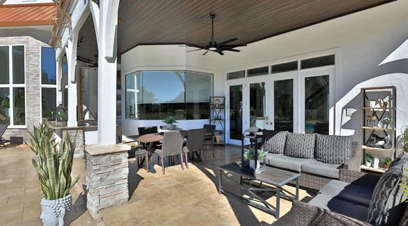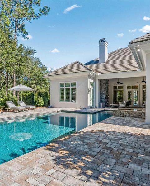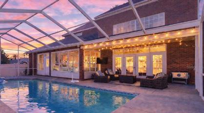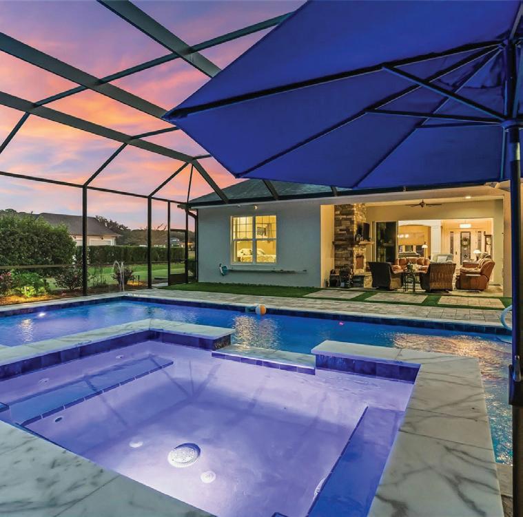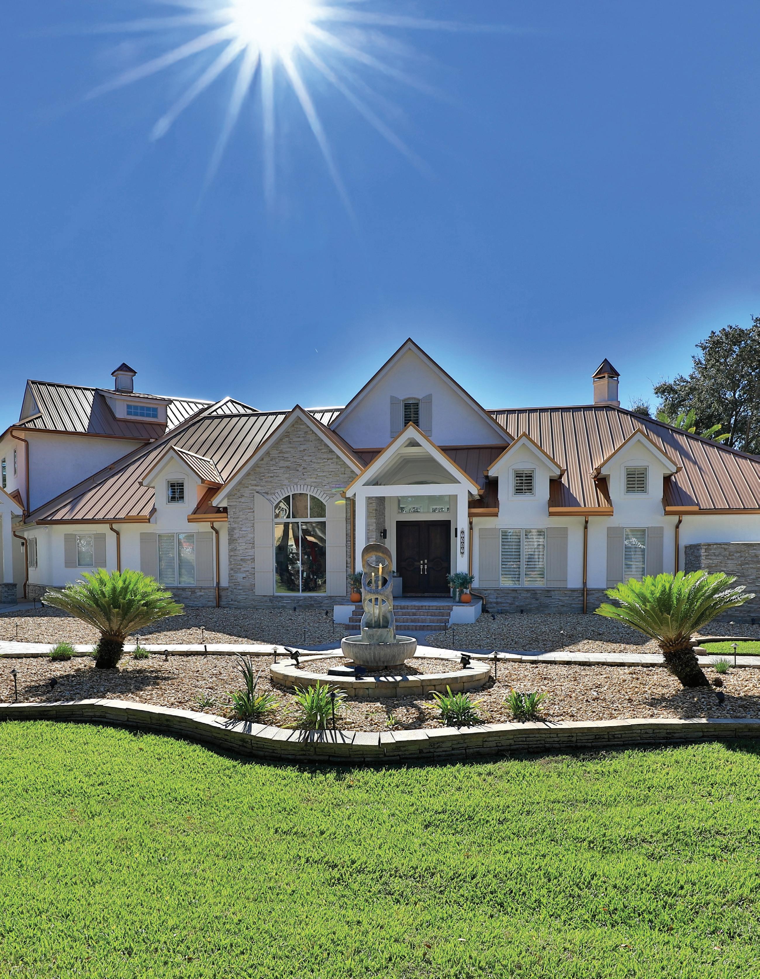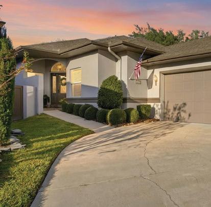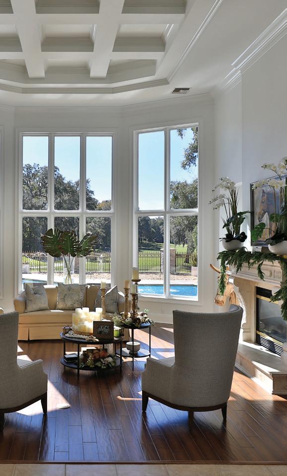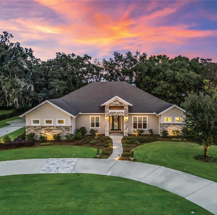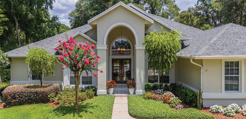 in the Country Club of Ocala... where timeless architecture, modern elegance, and resort-style living come together in perfect harmony. Nestled along the rolling fairways of a unique, manicured golf-course community, this striking residence commands attention with its copper-toned metal rooflines, stone accents, and grand presence- an estate as beautiful as it is unforgettable. Inside, the home unfolds with soaring ceilings, abundant natural light, and sweeping golf views framed by dramatic floor-toceiling windows. The formal living room creates a showstopping first impression with its coffered ceilings, stately fireplace, and wide-open vistas that blur the line between indoors and out. The gourmet kitchen is designed for both beauty and function, featuring rich custom cabinetry, a massive entertaining island, double ovens, and warm gathering spaces that flow effortlessly into the family and dining areas. Every detail speaks to quality craftsmanship and comfort. This exceptional home offers 4 bedrooms and 5.5 baths, plus an office and a media room, ensuring ample space for both relaxation and productivity. A breezeway conveniently connects to the man cave, which includes a full bath and can easily be transformed into a mother-in-law suite, adding versatility to the layout. Step outdoors to your private retreat— expansive resort-style pool area surrounded by stone pavers, elegant fencing, and multiple lounging spaces. From sun-drenched patios to an inviting fire pit terrace, the setting offers unmatched views of the manicured greens and mature oaks that define the landscape. Outdoor living is elevated even further with a covered patio, upper-level terrace, and a full outdoor kitchen, ideal for hosting unforgettable gatherings. Set within one of the area’s most desirable golf communities, this estate captures the essence of refined living—grand, welcoming, and effortlessly impressive. From sunrise over the fairways to evenings by the pool, this home offers a lifestyle of privacy, elegance, and year-round enjoyment.