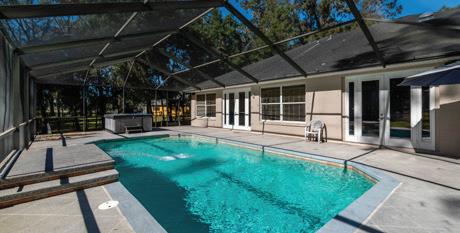 Spacious 4 BR, 3 BA Home + 2C Garage on 1+ Acre with Screened Saltwater Pool + Detached Garage/Workshop. Tucked on a private cul-de-sac street yet minutes from SR 200.