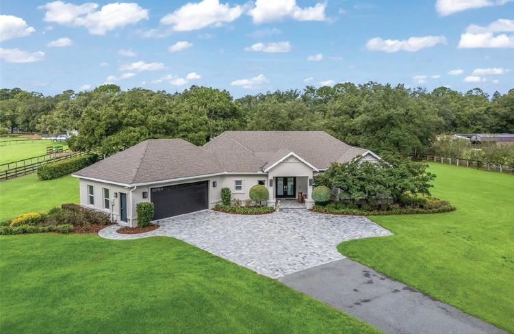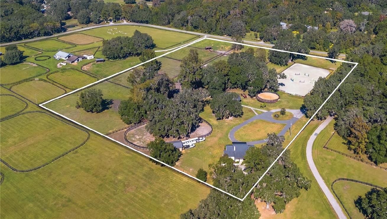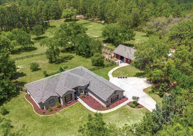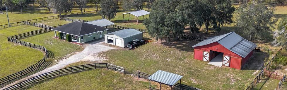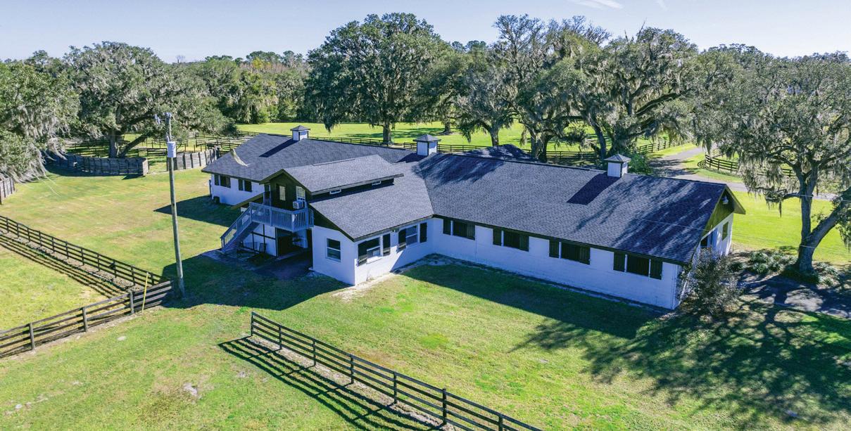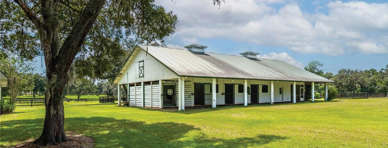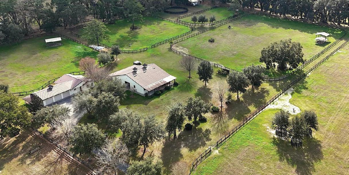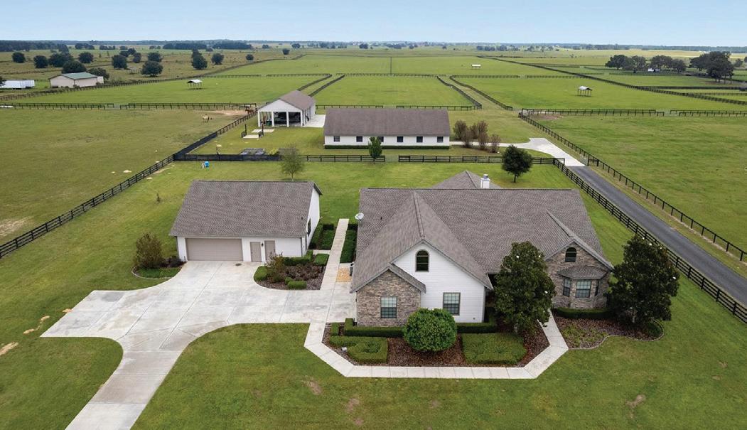 Nearly 25 acres of gated, fully fenced pasture, this exceptional Fort McCoy equestrian estate features a custom 2022-built barndominium offering 3 BR, 3.5 BA, and 3,800± SF of energyefficient living. Highlights incl. a 6-stall center-aisle barn, extensive workshop space, and 8 pastures—all minutes to Ocala and within easy reach of equestrian venues & trail.