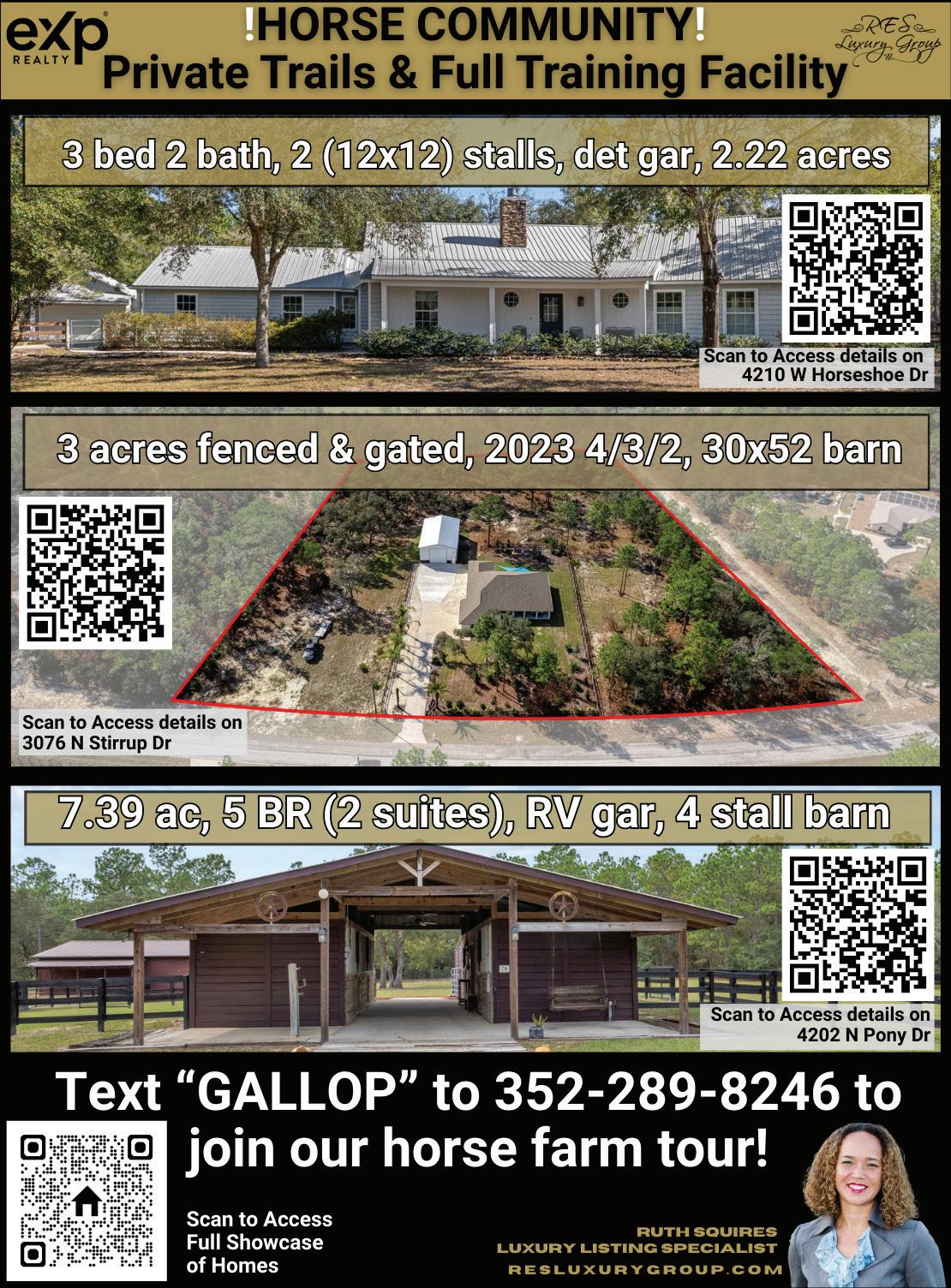 Discover the pinnacle of horse country living. 2,500+ Sq Ft home, 6-stall center aisle barn, 10 cleared, level acres featuring perimeter board fencing, and 6 meticulously maintained pastures. 15 min to World Equestrian Center.
