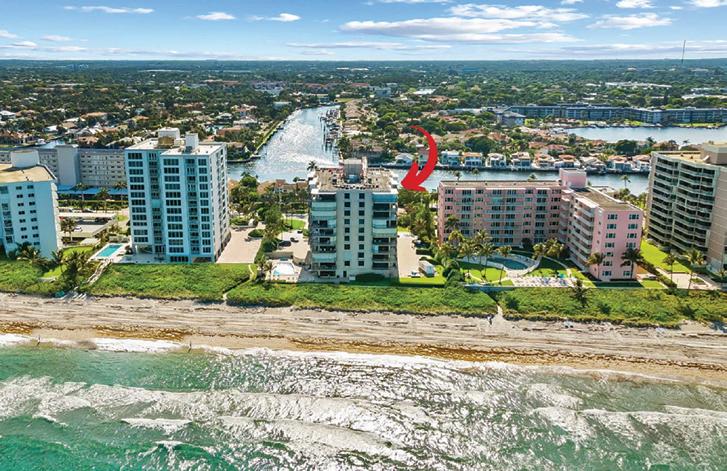 Pompano Beach This oceanfront retreat offers two levels of refined coastal living with panoramic views of the Atlantic and elegant spaces designed for seamless entertaining.