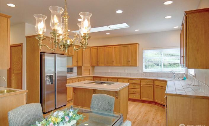 Fabulous VIEWS of Cascades & Mt. Rainier from nearly every room. Walls of windows & skylights for a bright, cheerful atmosphere. BIG rooms, tall ceilings, Gourmet Kitchen with massive island, 2 ovens, 5 burner cooktop, in-counter grill & more. Primary suite has deck access, a stunning ensuite & HUGE walk-in closet. Wet Bar, Central A/C, Speakers throughout, outdoor living space with SS sink, TV, ceiling fan, & plumbed for gas grill.