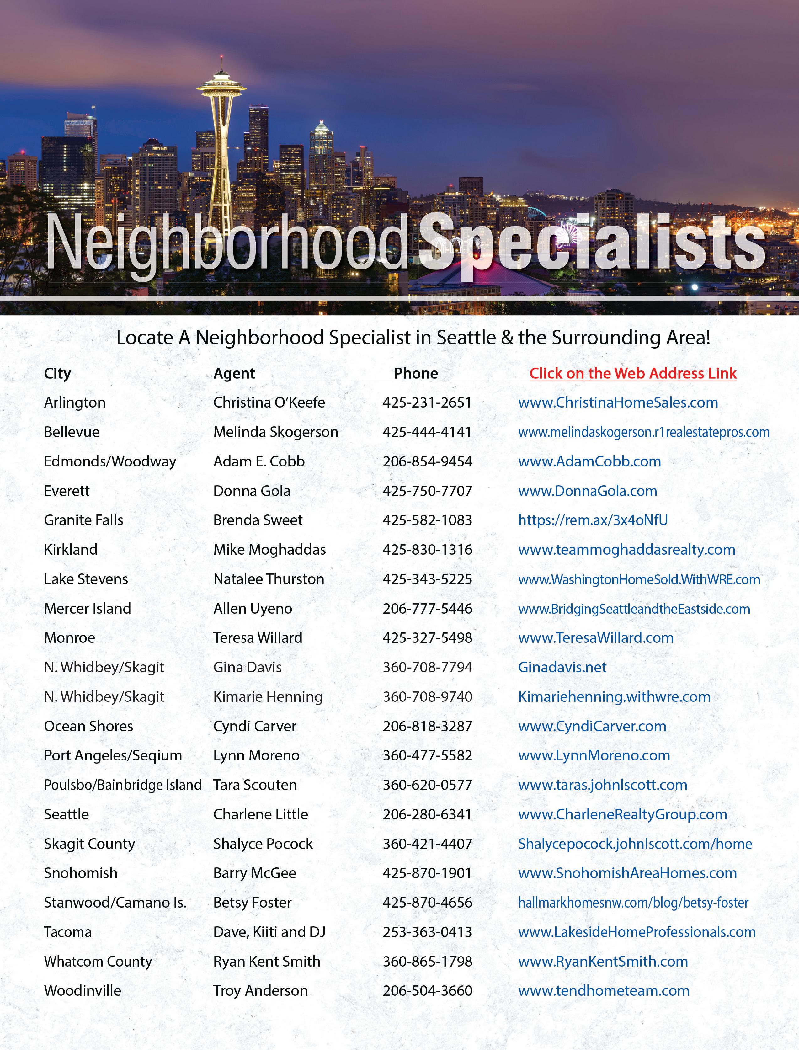 To become an Exclusive Neighborhood Specialist today: call John at 425-827-2332