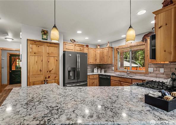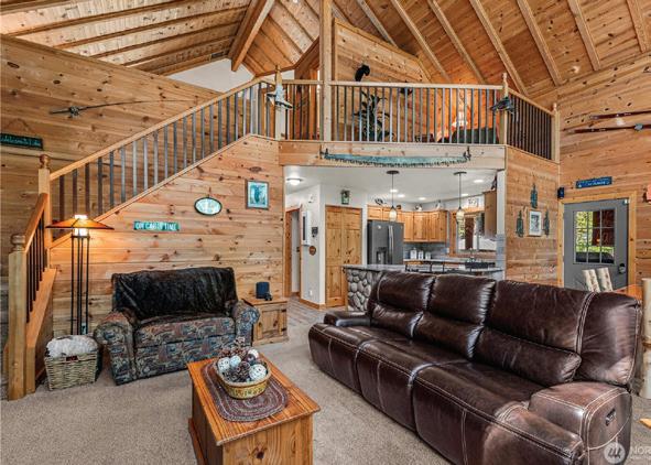 Rustic charm & modern comfort at this stunning mountain escape tucked among the trees in the heart of Plain. The floor plan offers a main-level bedroom and full bath, plus an upper-level suite with additional loftstyle sleeping or lounging space. A newly finished flex space above the detached four-car garage includes a private bathroom, heat, and A/C. Wraparound deck, gas fireplace, & hot tub, all surrounded by the sounds of nature. Community river access is just steps away.