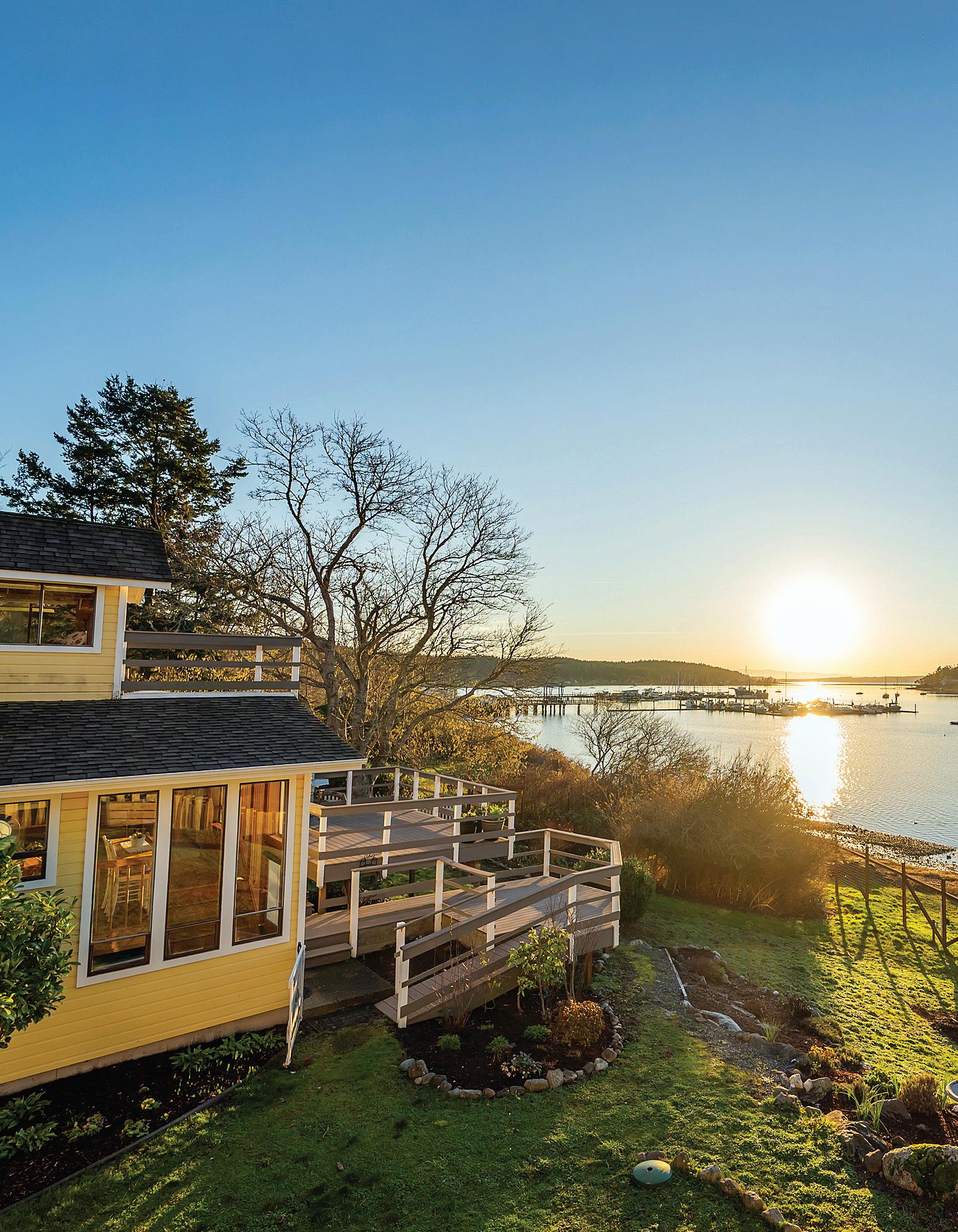 Charming neighborhood just moments from town, parks and the beloved forestlands. Covered front porch, light-filled living and a view of Guemes Channel.