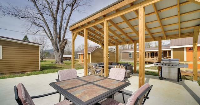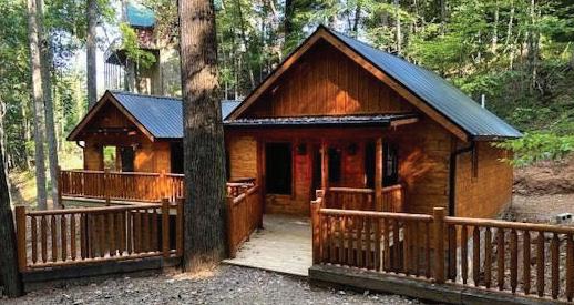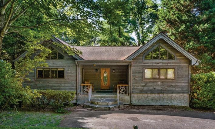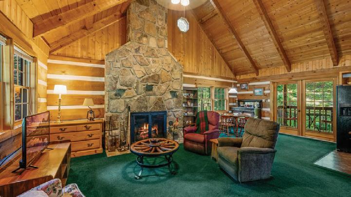 Well-appointed cabin with seasonal mountain. views. Resort amenities include seasonal pool, stocked fishing pond, hiking trails, playground, and wedding chapel. #HNEW