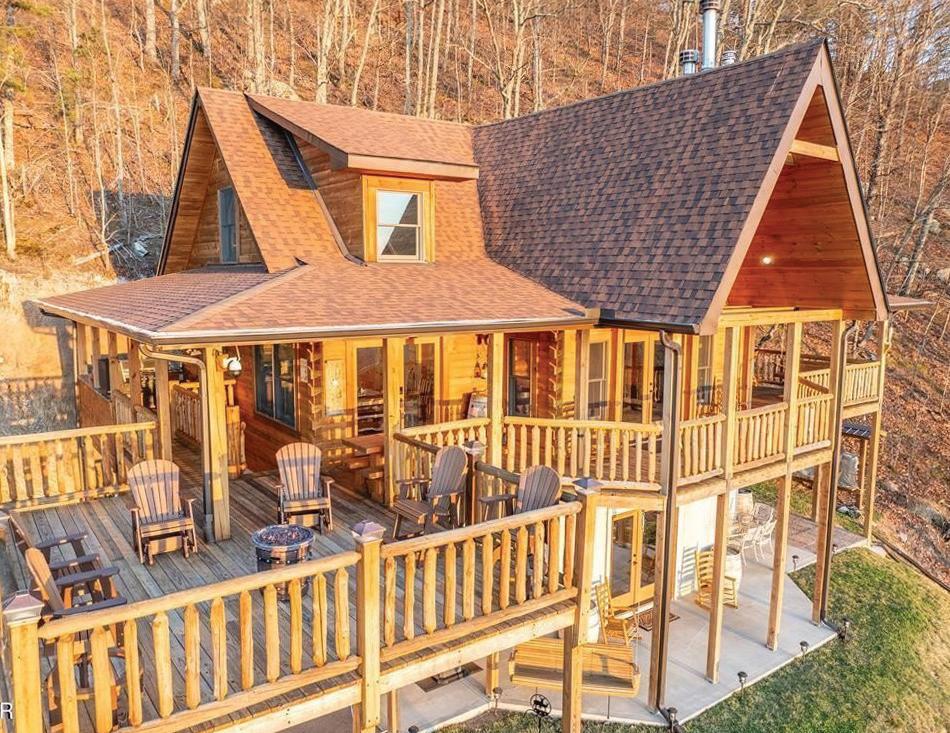 Established STR resort with prime Parkway proximity and 30+ years of repeat guest demand. True log construction with spa-inspired kitchens and baths. City water, sewer, and natural gas. ADR-driving amenities include a theater room, game room with an extensive game offering, and larger-than-most indoor saltwater gunite pools. Offered fully furnished and Turnkey. Building strong bookings for future rentals. #H308482 LIMITED NEW-BUILD OPPORTUNITIES AVAILABLE. ASK ABOUT OUR NEW CABIN BUILDER INCENTIVE — $1,194,509 — CALL SUSAN LUXURY MEETS SMOKY MTN. GRANDEUR. 3BR/4BA with theatre room. Mtn retreat on 15 private acres w/ panoramic views and resort-style outdoor living.