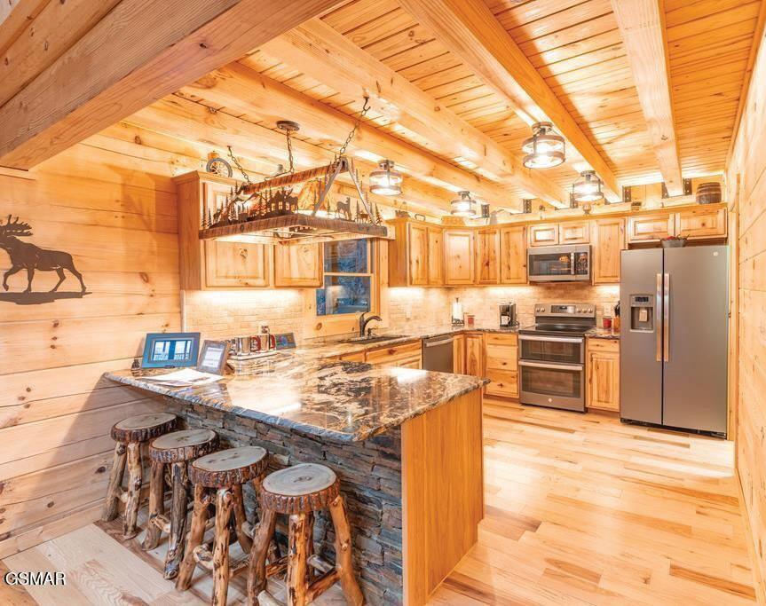 NEVER BEFORE OFFERED! Custom 3BR/3BA cabin perfectly situated on over an acre! The 2,390 sq. ft. of living space easily sleeps 12+ people! 3 levels, fully furnished packed with high-end features. #H709462