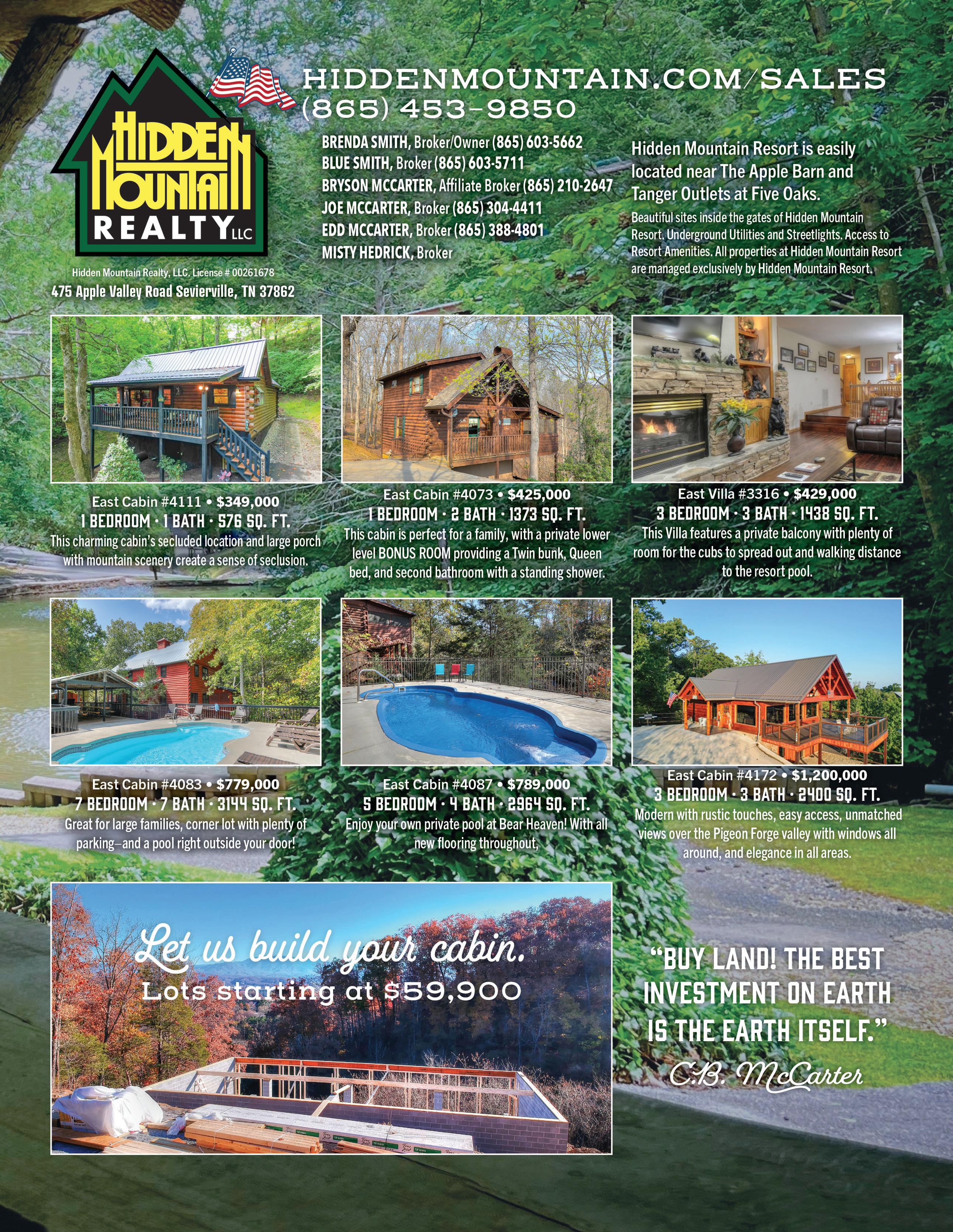 The Summit on Bluff Mountain. Stunning lot in desirable comm. w/direct mtn views & gentle slope for ideal construction! #H310588 3.71 Acres $674,000 Rocky Top Plunge - a newly built luxury pool cabin in outstanding location! Rustic modern living that sleeps 23 guests! #H310537