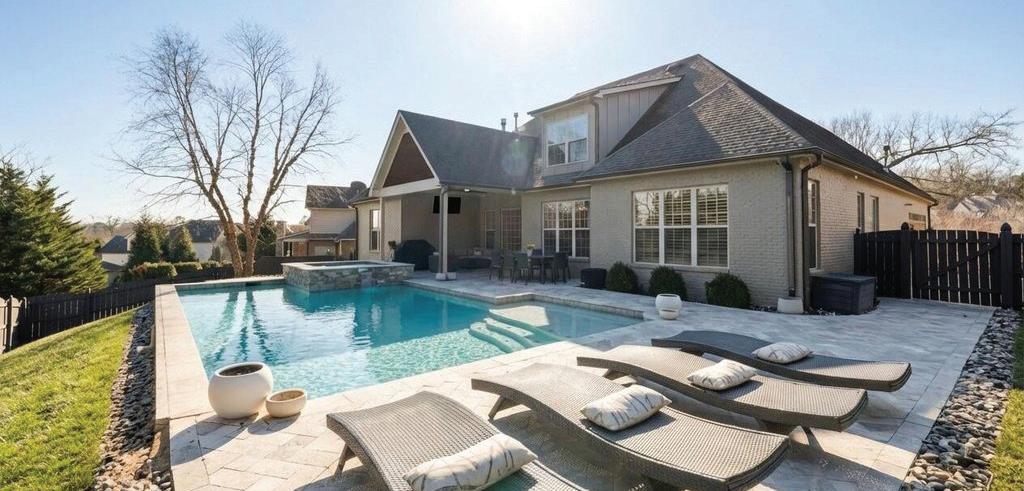 Designed to impress. Featuring a breathtaking gunite pool & spa, this home offers the perfect blend of luxury, comfort, & effortless entertaining. 6 spacious BRs & 4 full BAs across 3,883± SF of beautifully crafted living space. The main level is thoughtfully designed with a luxurious MBR & 3 additional BRs--a rare & highly sought-after layout! Soaring cathedral ceilings, new hardwood floors, & striking exposed wood beams create a warm yet sophisticated atmosphere throughout. Upstairs is an entertainment haven. Private theater room--complete with projector & shuffleboard table--along with 2 additional BRs, a full BA, & an abundance of walk-out storage. Backyard oasis! Luxurious gunite pool & spa with rapid heating are surrounded by travertine pavers. You’re just minutes from Ft. Loudon Lake, Choto Marina, & Choto Market, giving you easy access to dining, shopping, & outdoor adventure. #H1329052 — $1,199,000