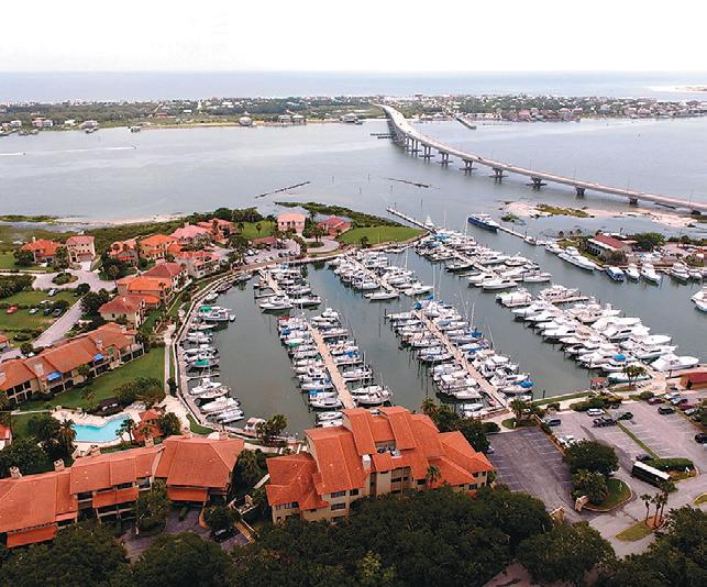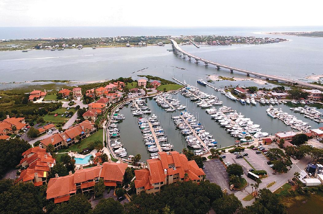 Camachee Island is a small island, connected by bridges to the mainland on the west and to Vilano Beach on the east. It is home to island villas, townhouses, and a small community of luxury homes, as well as the Camachee Cove Yacht Harbor. This harbor community serves thousands of visiting boaters each year which transit the waterways and coastline of Florida. A short walk you have restaurants for breakfast, lunch, dinner, take-out, live music, charters for sailing and fishing boats, sailing school, convenience store, bait and tackle, and several other shops and marine-related businesses. A short bike ride or drive to Vilano Beach brings you to sun, fun, and limitless beachside activities, along with numerous eating establishments for casual or fine dining.