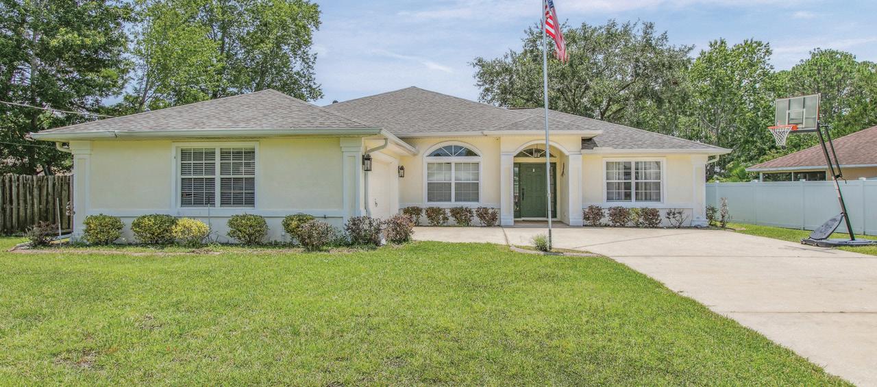 Located on a beautifully treed culdesac, this concrete block home includes bonus inlaw suite. Only $33/month includes golf course community, Intracoastal fishing dock, hiking/biking trails, tennis, sports fields. Less than 10 min to schools & shopping & only 7 miles to Crescent Beach. $595,000