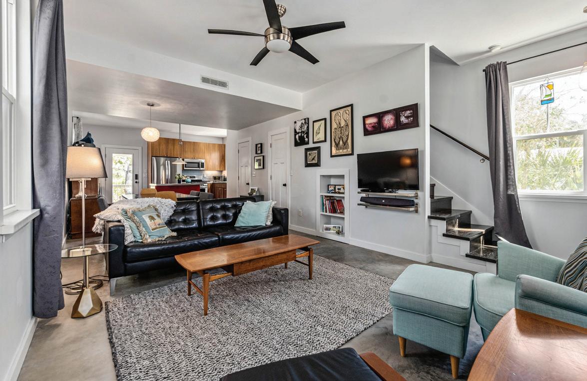 Custom built by Newcastle Homes in 2012, this urban residence with a modern nod to the traditional architecture of the neighborhood, is the real deal. Built for daily living, the smooth concrete floor spans the wide open 1st story, with comfortable gathering and dining space plus a super kitchen. Natural light filters in through many windows and it’s a seamless flow from front to back porch and then patio. 2nd floor has large main bedroom with wooden beamed ceiling and large closet, 2nd bedroom with a private covered porch, shared bath and laundry closet. Fully fenced, the big backyard is open to anything you want to do. Pull in your boat or camper, charge your EV in the front driveway, add a pool - it’s all possible. On the south end of downtown, there’s a sidewalk that takes you to all the hot spots or to the community pool and the park. Sweet....