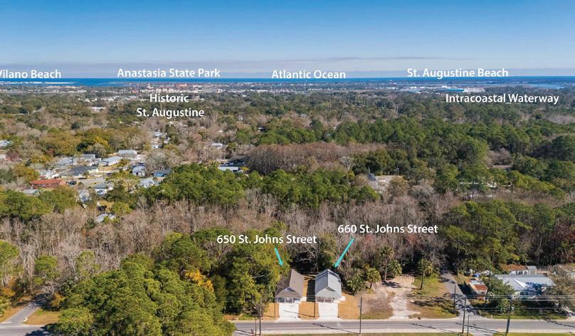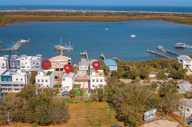 In Downtown St. Augustine, this charming 1905 home features a wraparound porch and a spacious lot, perfect for outdoor evenings. With three bedrooms, an updated interior, and a cozy shed transformed into a speakeasy, it offers ample development potential. Fully furnished and equipped for nightly rentals, the property allows for a guest house or garage above. Possibilities abound! $995,000. YOUR PERFECT RETREAT IN DOWNTOWN ST. AUGUSTINE! This stunning 2021 custom-built, fully furnished home features soaring ceilings, an open living area, a master suite, two guest bedrooms, and a custom kitchen. Enjoy lowmaintenance landscaping and a prime location near historic sites. $925,000.