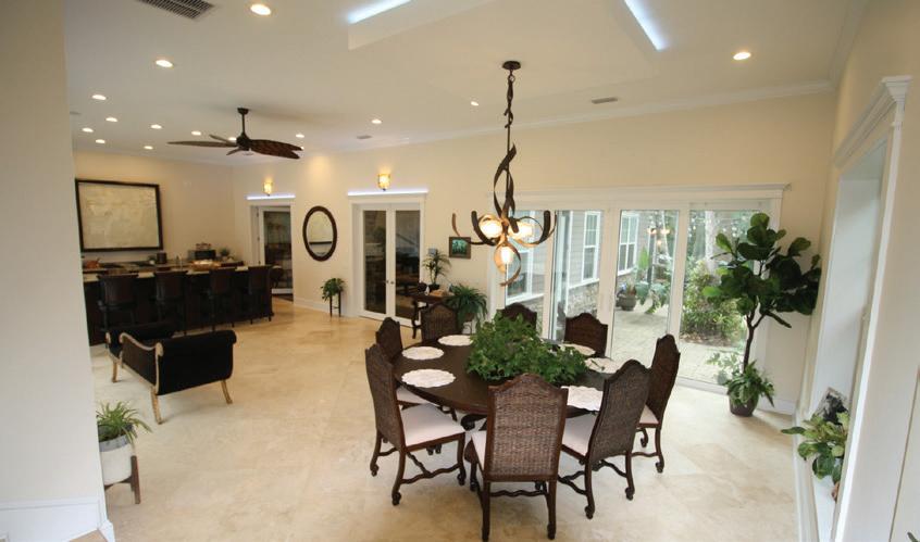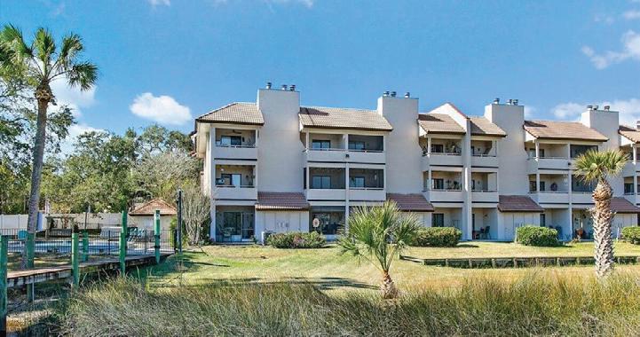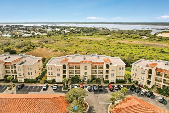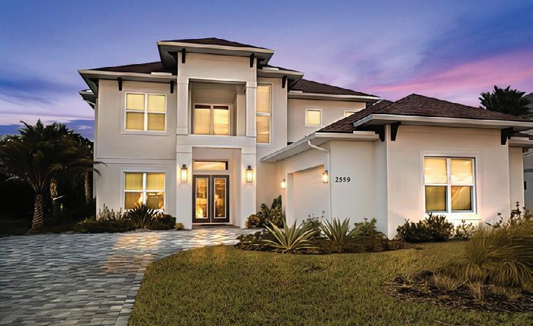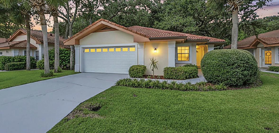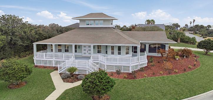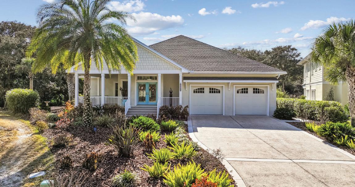NESTLED AMONG CENTURY-OLD OAKS, this custom-built home in St. Augustine offers stunning views of the island’s premier golf course, lake, and marsh. Features include 12-foot ceilings, a spacious split floor plan with the primary suite and sitting area on the ground floor, and two large guest rooms and a bonus room with a viewing deck upstairs. The home boasts custom details like plantation shutters and a fireplace. This beautifully maintained property is listed at $1,295,000.