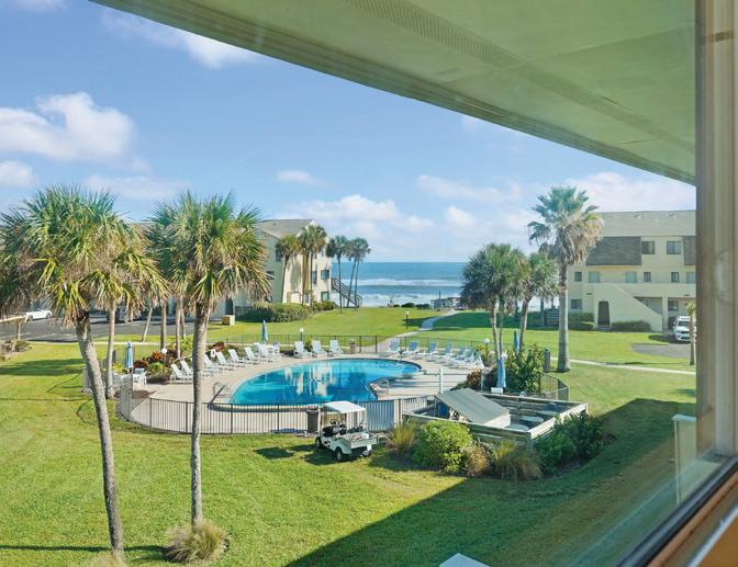 QUAIL HOLLOW, A BEAUTIFULLY UPDATED ocean-view condo in a gated St. Augustine Beach community featuring granite countertops, a tiled walk-in shower, stunning sunset balconies, private beach access, a community pool, and proven vacation rental success—perfect as a coastal retreat or investment property.
