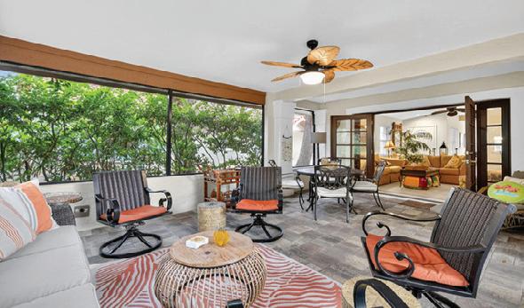Main home offers a spacious gathering area that flows seamlessly to the pool pavilion. A 1st floor guest room with adjacent bath ensures comfort for visitors. Upstairs, 2 en-suite bedrooms feature wellappointed bathrooms and private balconies - an ideal spot to enjoy morning coffee with the sunrise. Atop the detached garage, the guest house is a haven of its own, including bedroom, full bath with laundry, living space and micro-kitchen. Perfect for extended stays or a home office/studio. Both dwellings enjoy easy access to the pool and full outdoor bath.