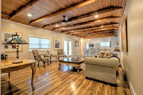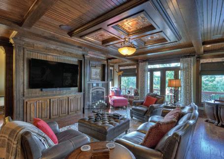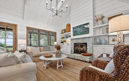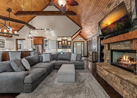 Soaring cathedral ceilings, lots of windows & fixed glass, exposed custom beam work, floor to ceiling stone “real” wood burning fireplace adds to the warmth of the great rm.